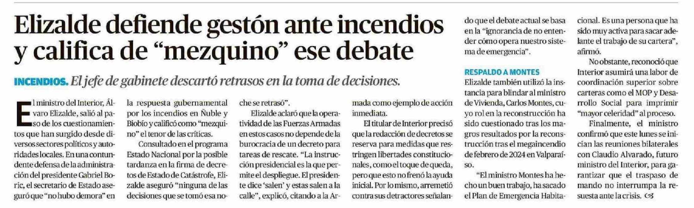 Elizalde defiende gestón ante incendios y califica de "mezquino" ese debate 26-01-2026 El Llanquihue |