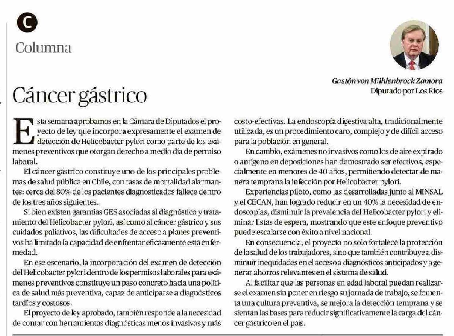 Título: Columnas de Opinión: Cáncer gástrico