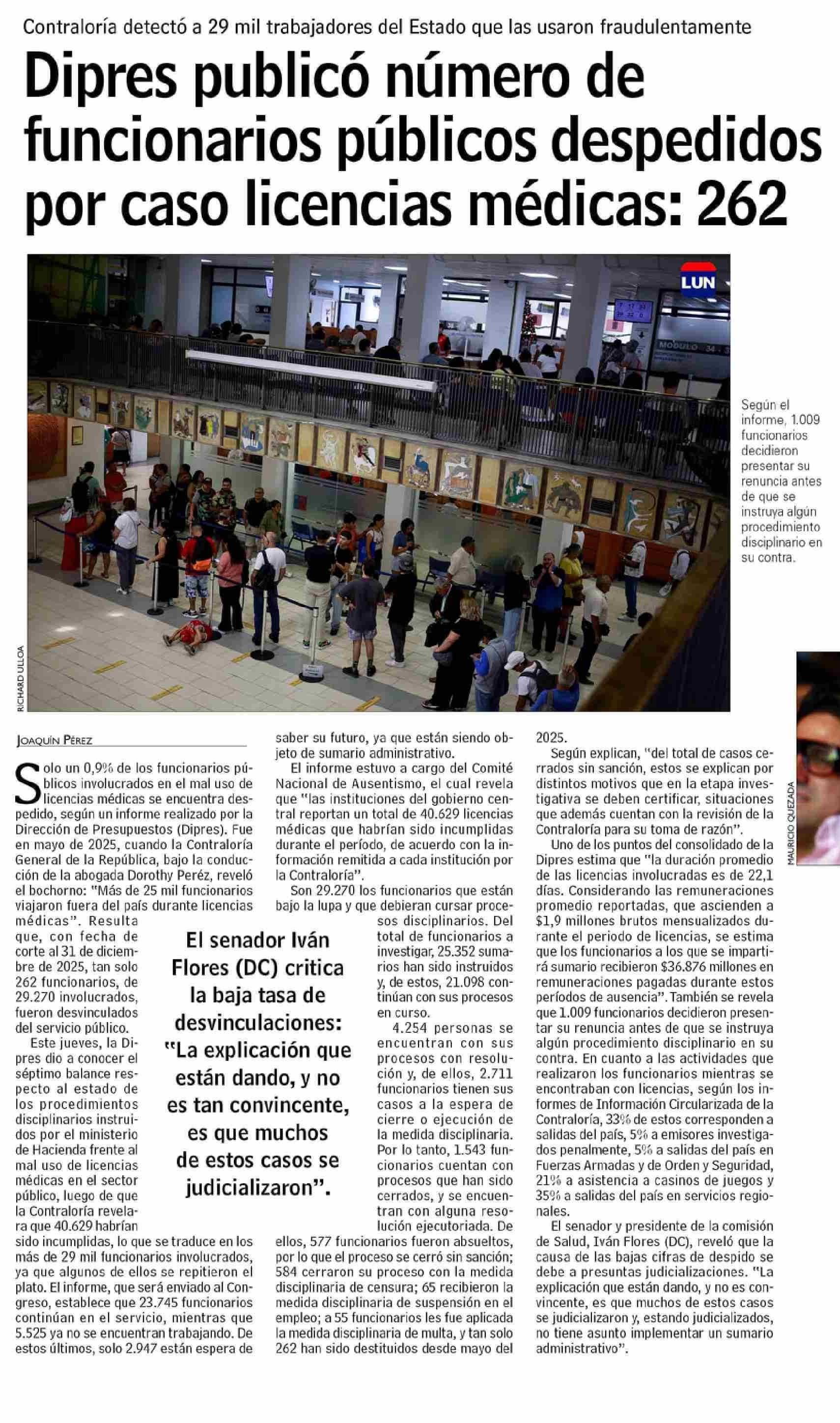 Dipres publicó número de funcionarios públicos despedidos por caso licencias médicas: 262 06-02-2026 Las Últimas Noticias |