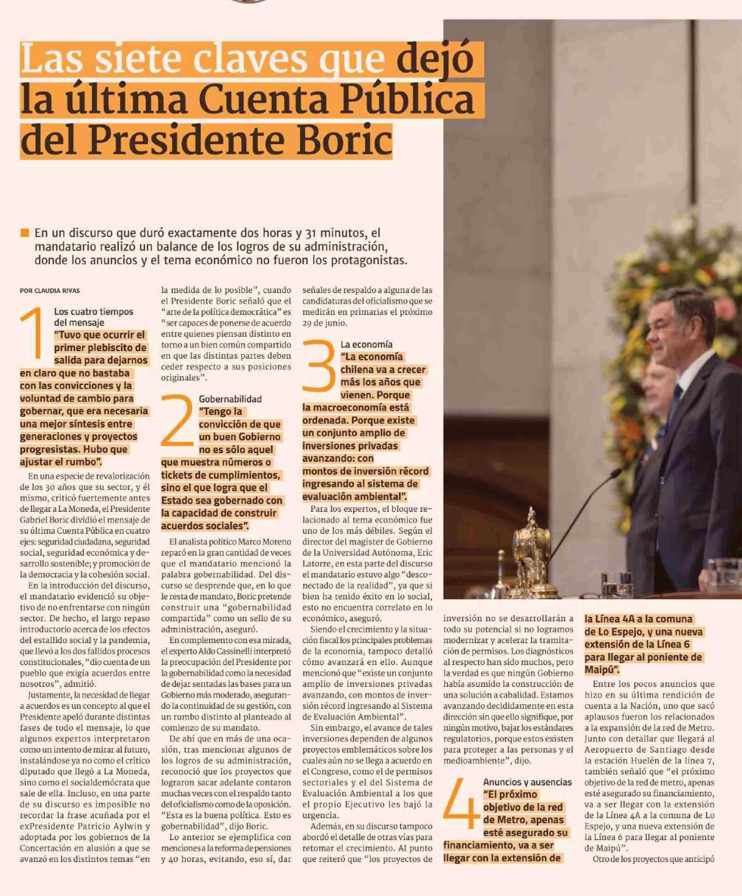 Las siete claves que dejó la última Cuenta Pública del Presidente Boric 02-06-2025 Diario Financiero |