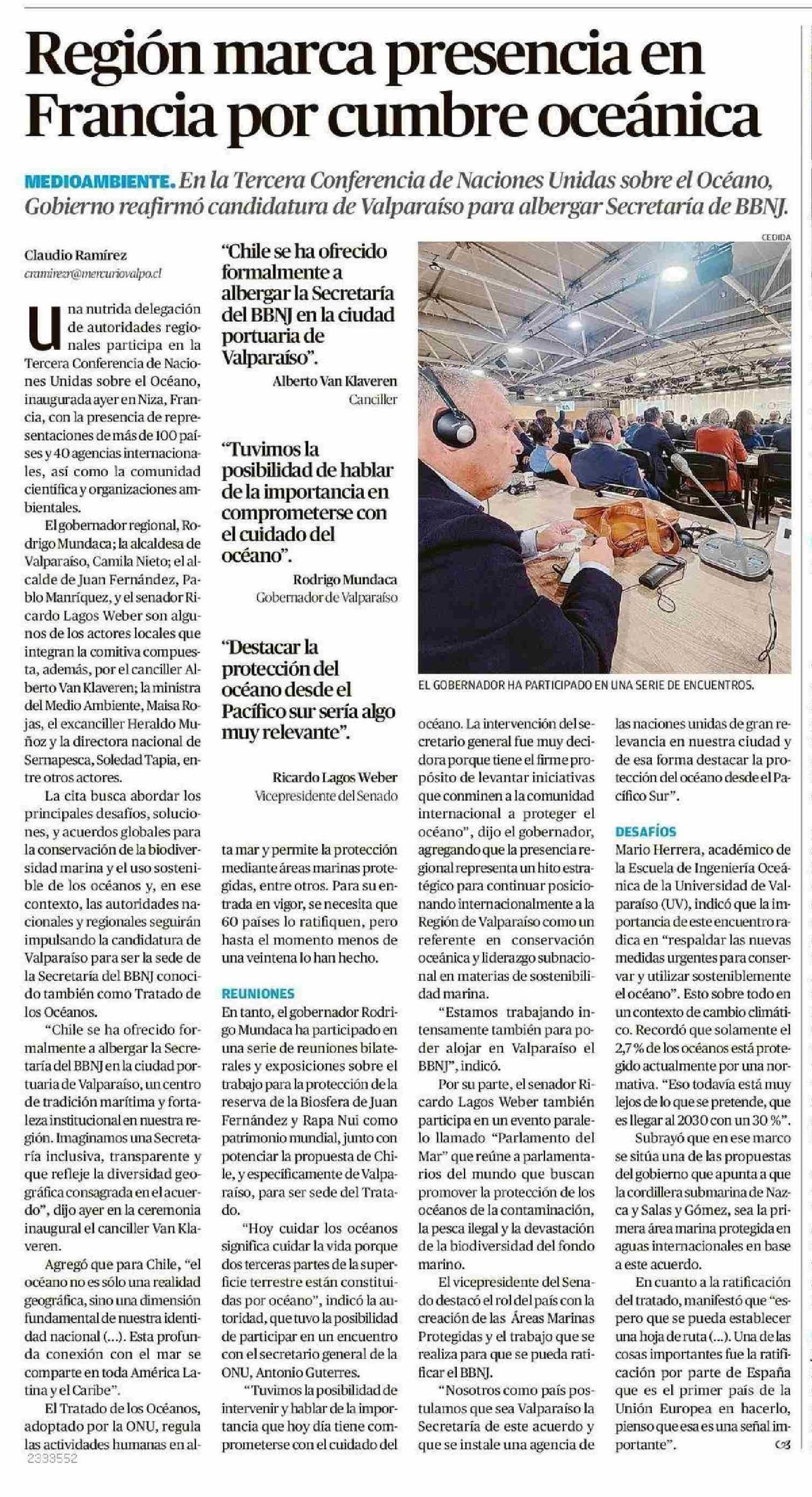 Región marca presencia en Francia por cumbre oceánica 10-06-2025 El Mercurio de Valparaíso |