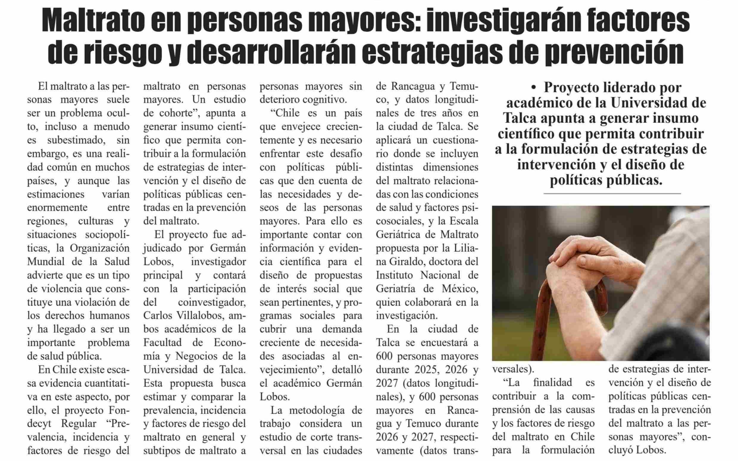 Maltrato en personas mayores: investigarán factores de riesgo y desarrollarán estrategias de prevención 15-03-2025 El Heraldo |