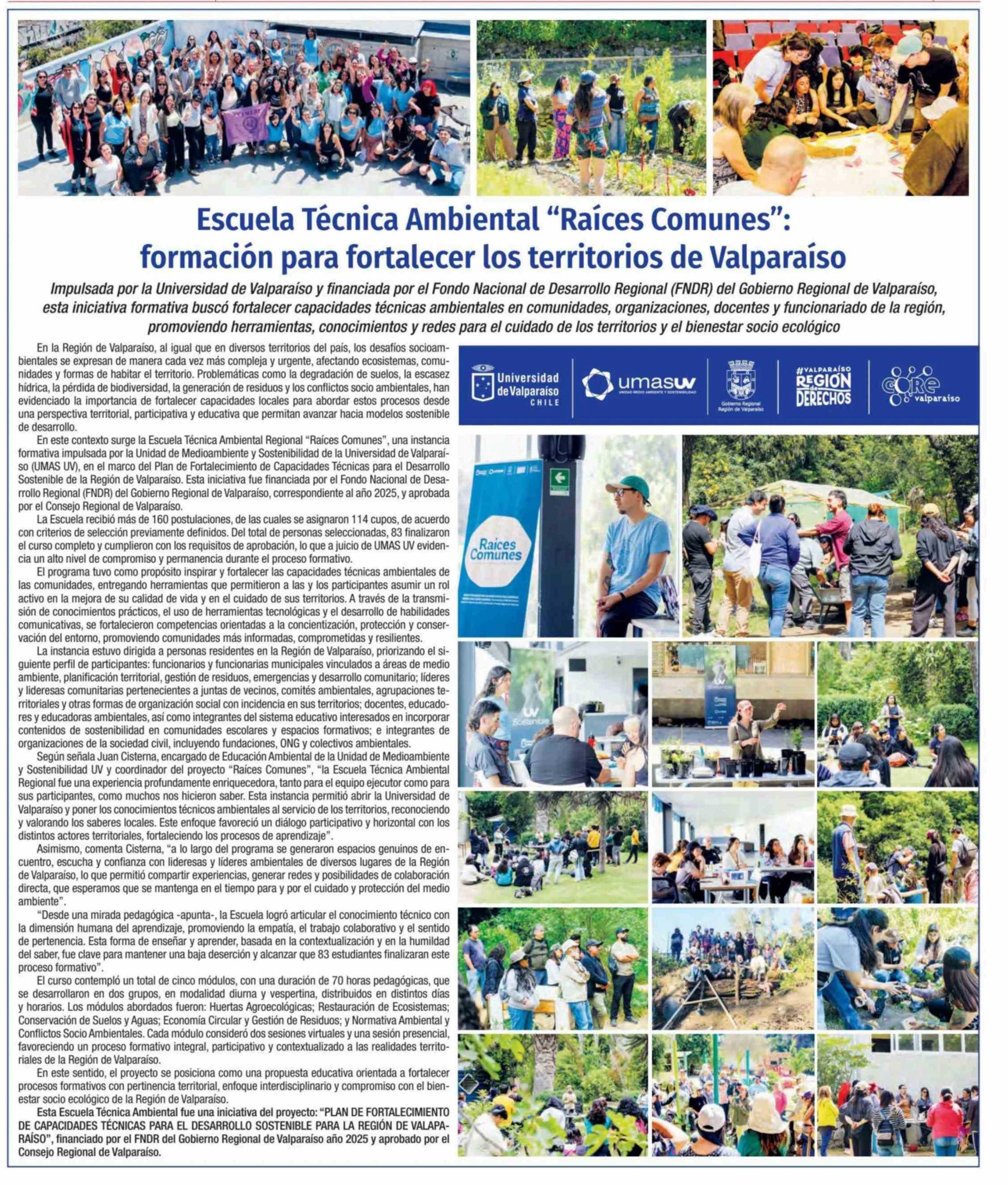 Escuela Técnica Ambiental "Raíces Comunes": formación para fortalecer los territorios de Valparaíso 10-04-2026 El Observador |