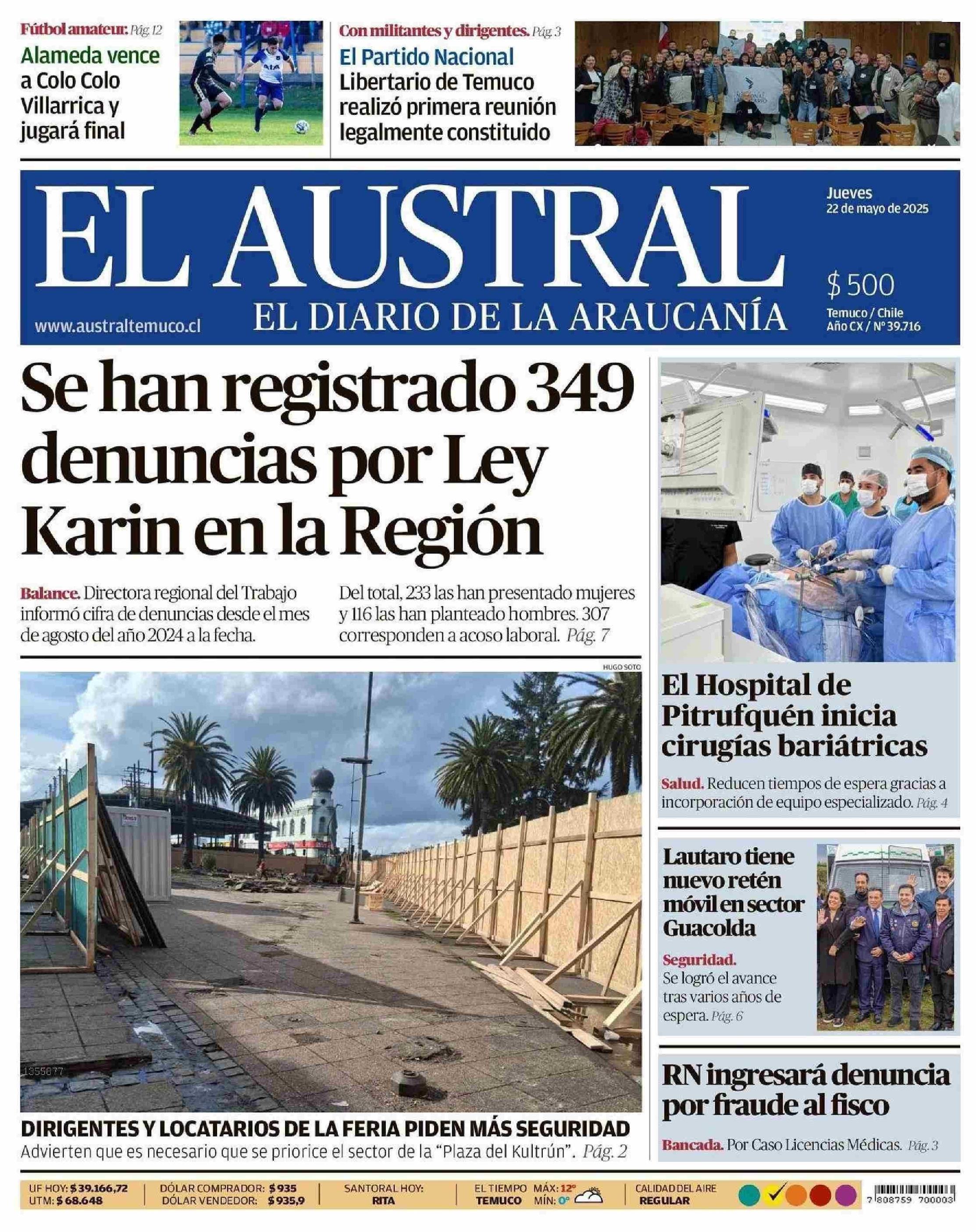 PORTADA EL AUSTRAL DE LA ARAUCANÍA - CHILE 22-05-2025 El Austral de la Araucanía |