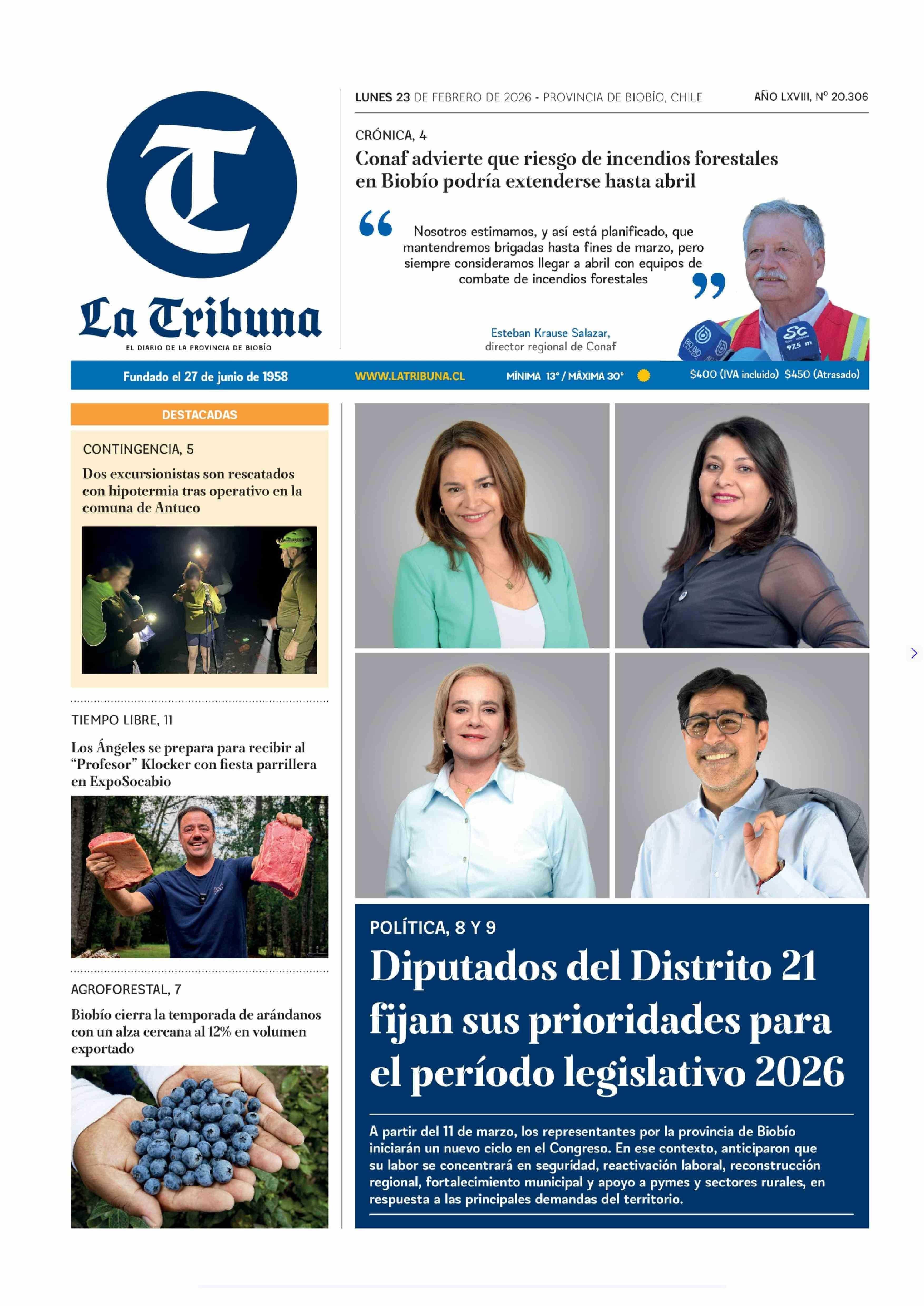 | Fecha: | 23-02-2026 | Sector: | Portada | Región: | Región del Bío-Bío |