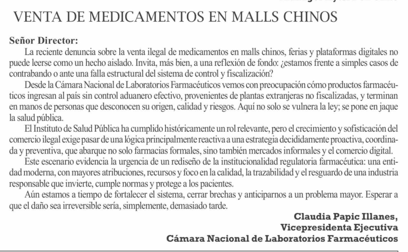 Título: Cartas: VENTA DE MEDICAMENTOS EN MALLS CHINOS