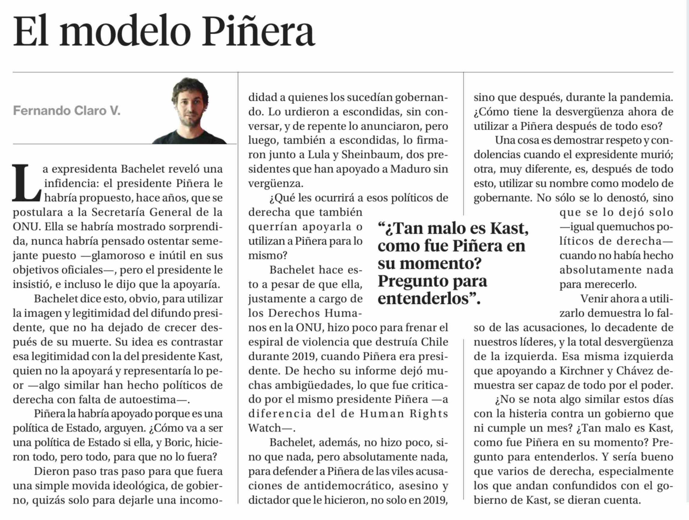 Columnas de Opinión: El modelo Piñera