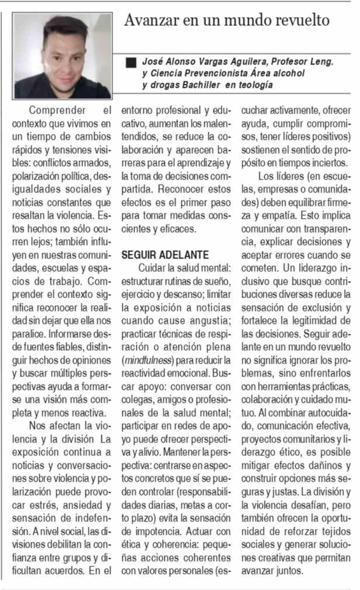 Columnas de Opinión: Avanzar en un mundo revuelto 01-04-2026 El Trabajo |