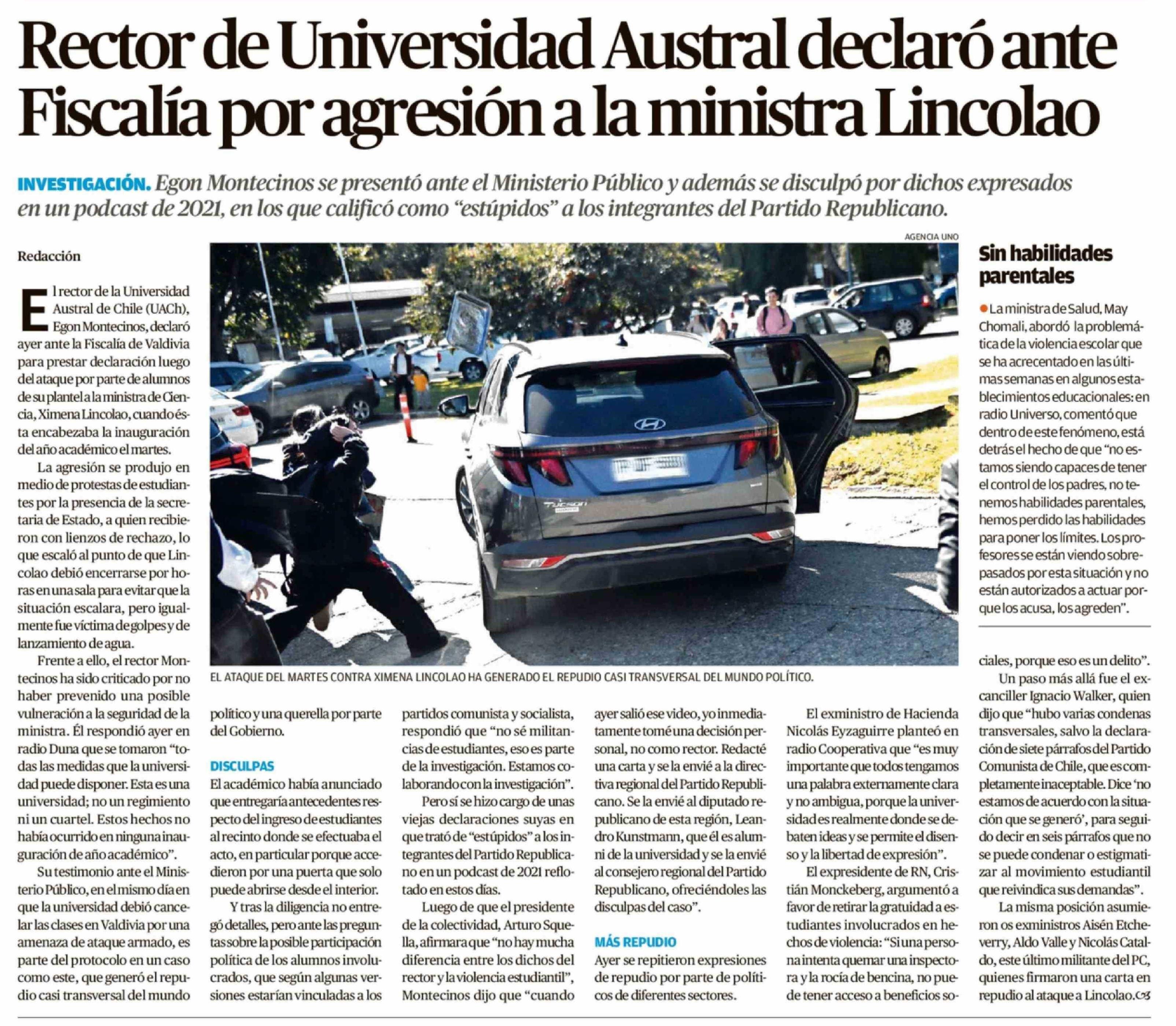 Rector de Universidad Austral declaró ante Fiscalía por agresión a la ministra Lincolao 11-04-2026 El Llanquihue |