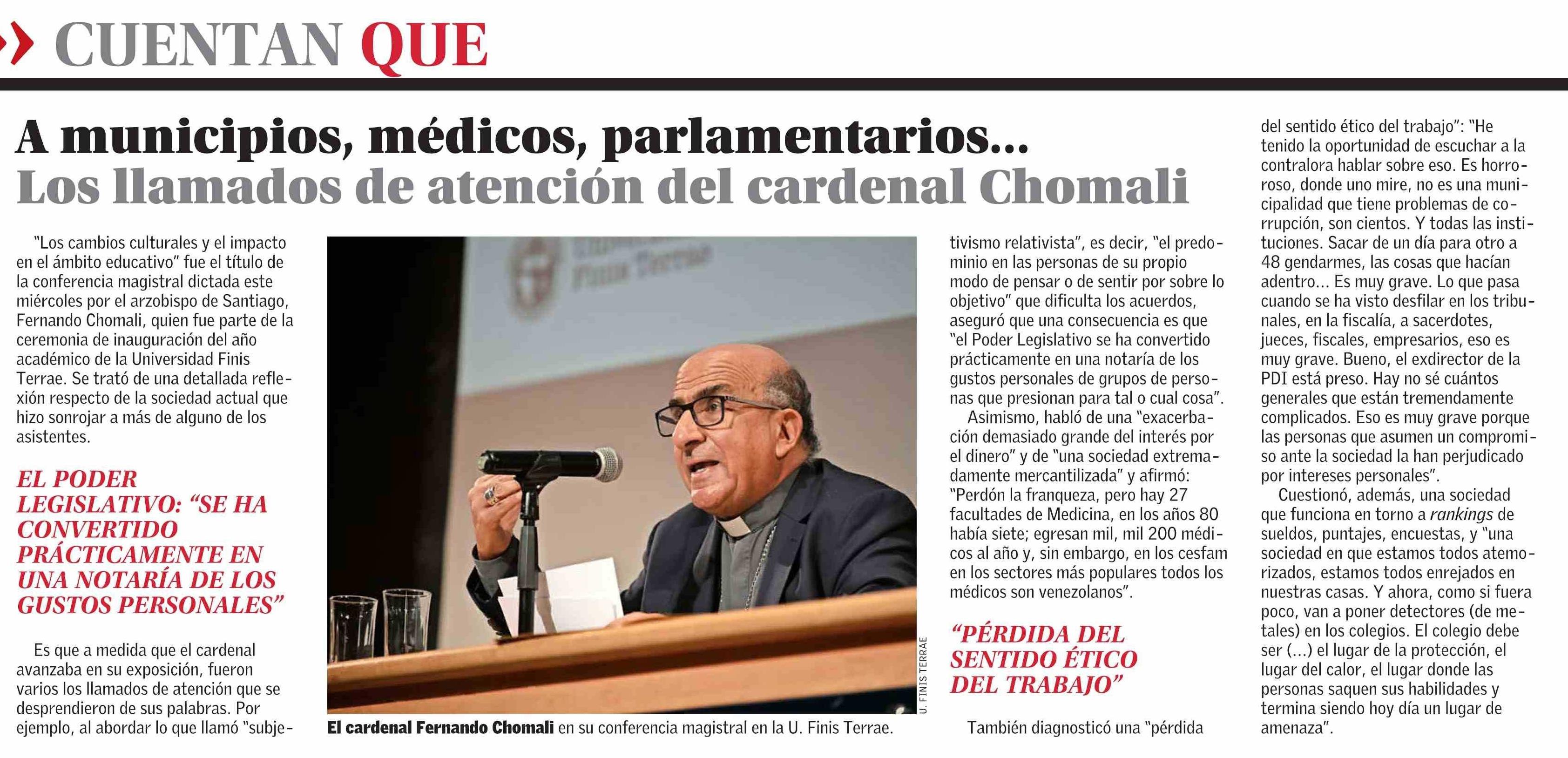 A municipios, médicos, parlamentarios... Los llamados de atención del cardenal Chomali 12-04-2026 El Mercurio |