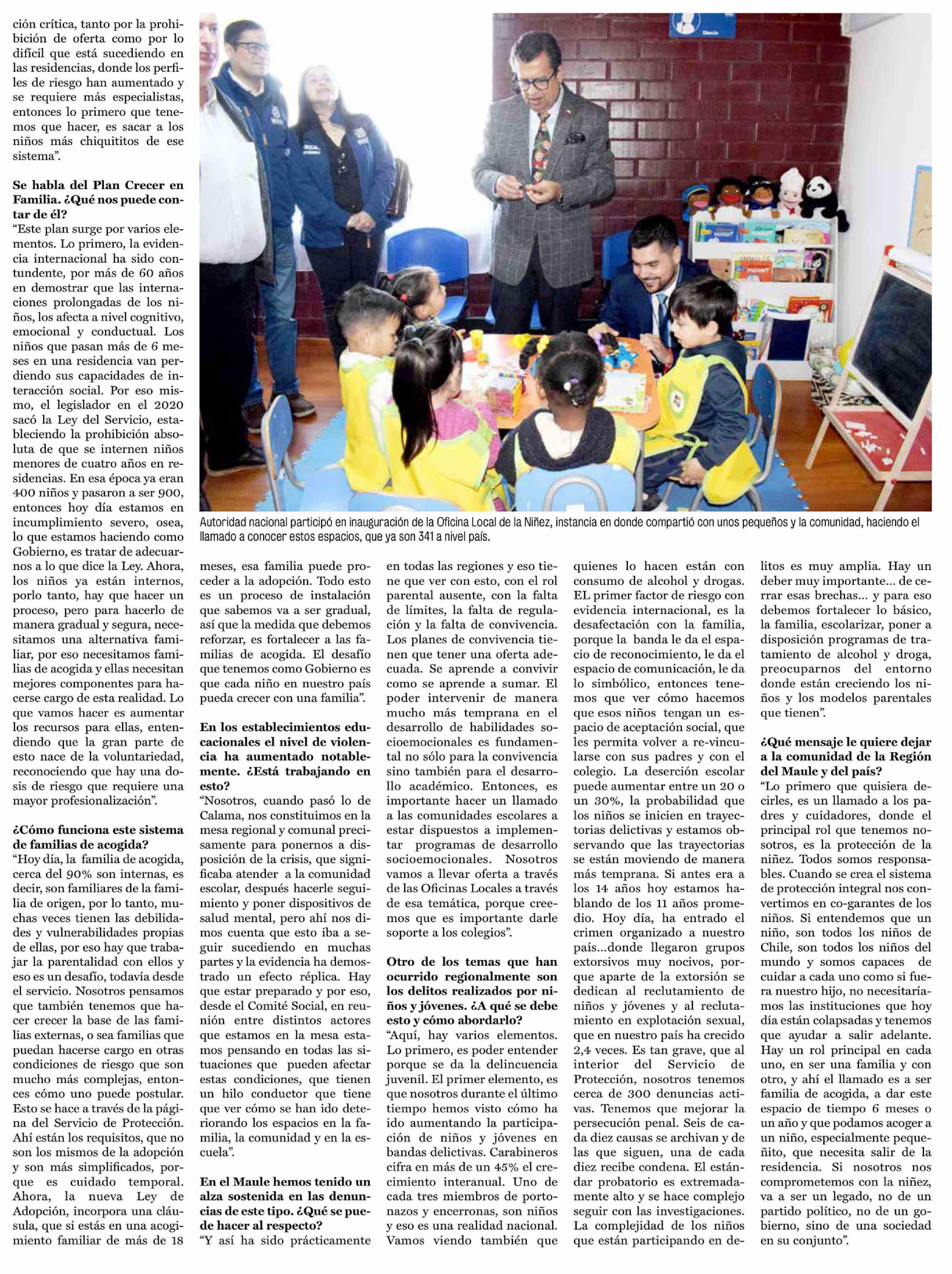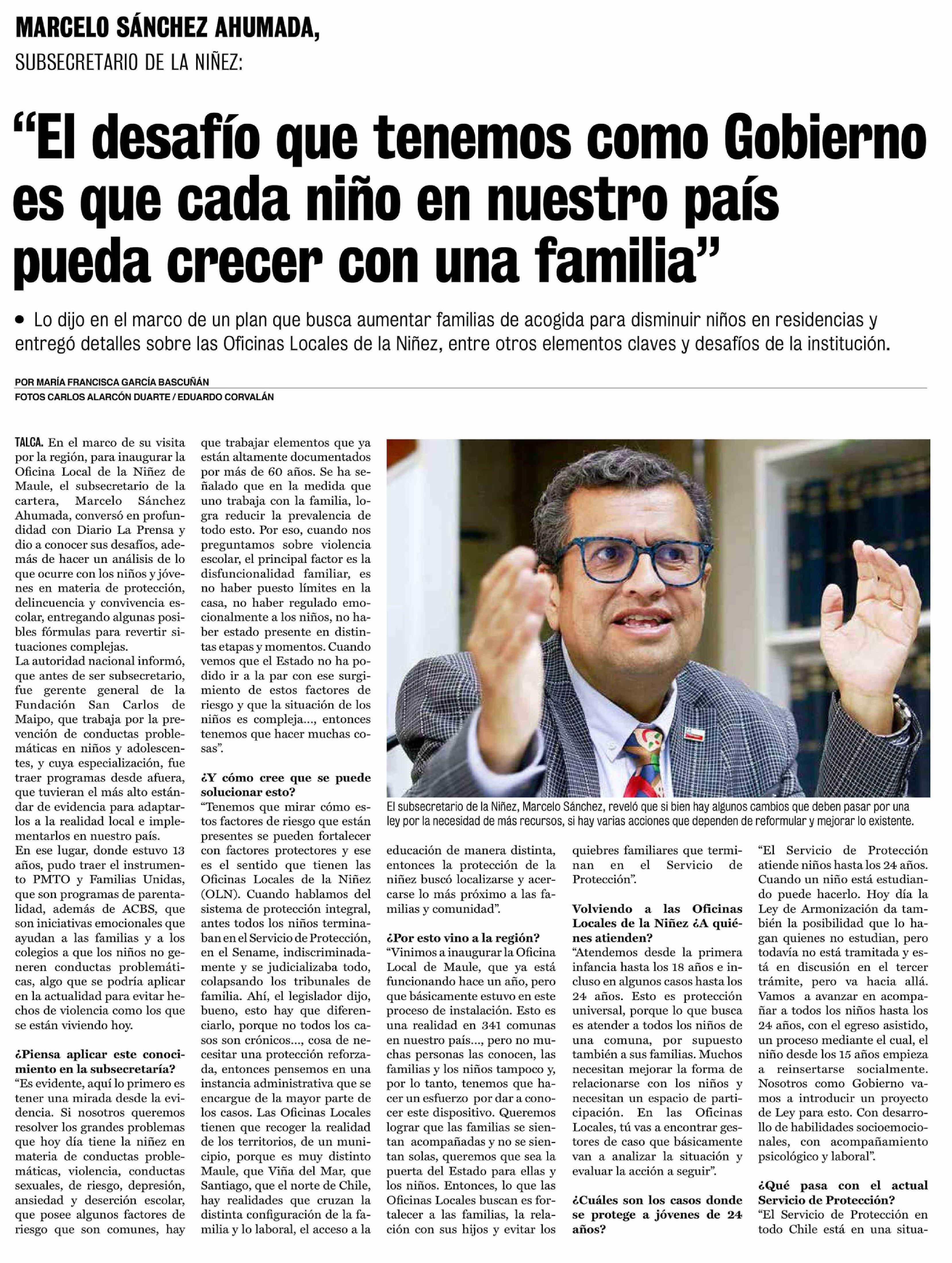 "El desafío que tenemos como Gobierno es que cada niño en nuestro país pueda crecer con una familia" 26-04-2026 La Prensa de Curicó |