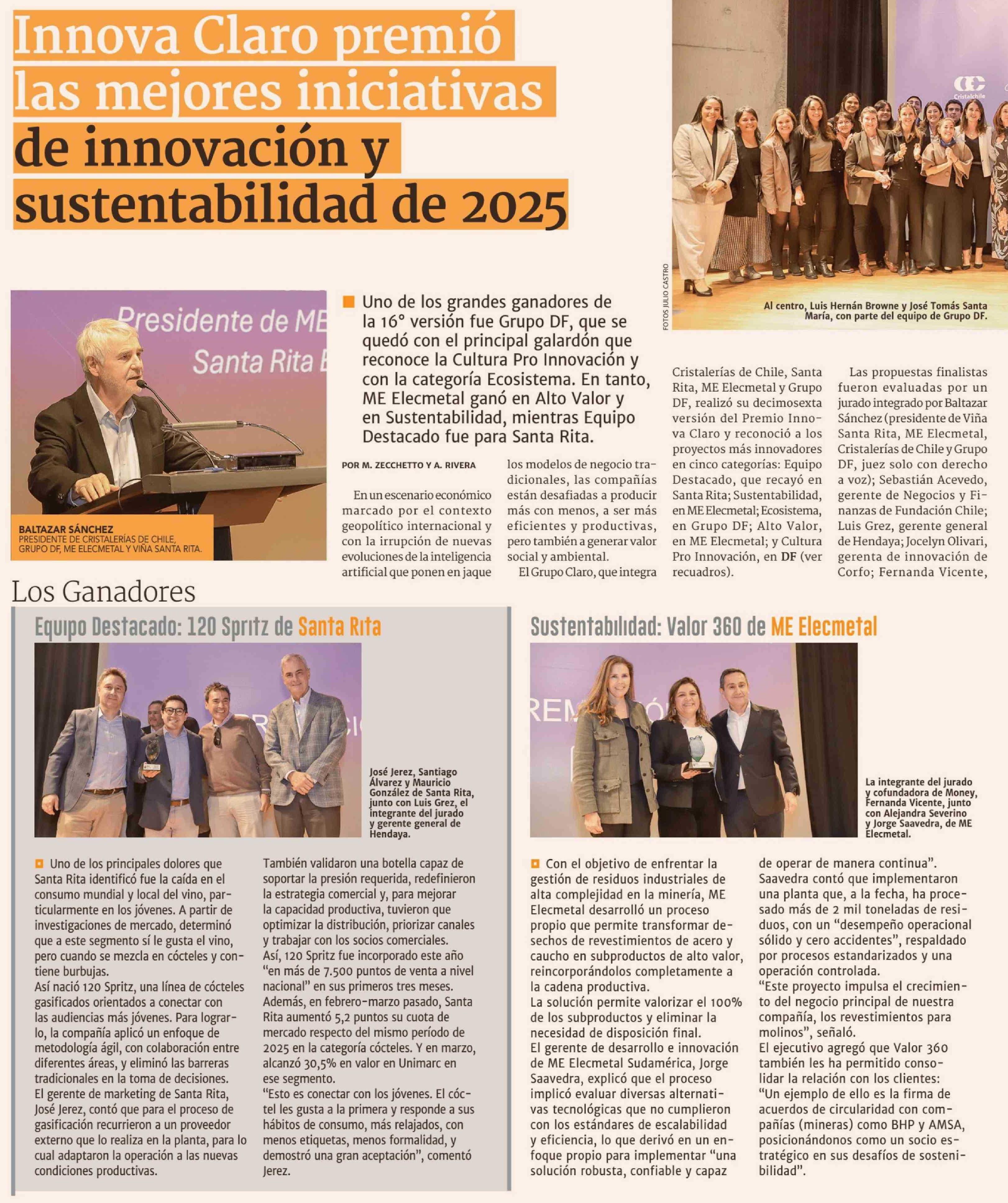 Innova Claro premió las mejores iniciativas de innovación y sustentabilidad de 2025 27-04-2026 Diario Financiero |