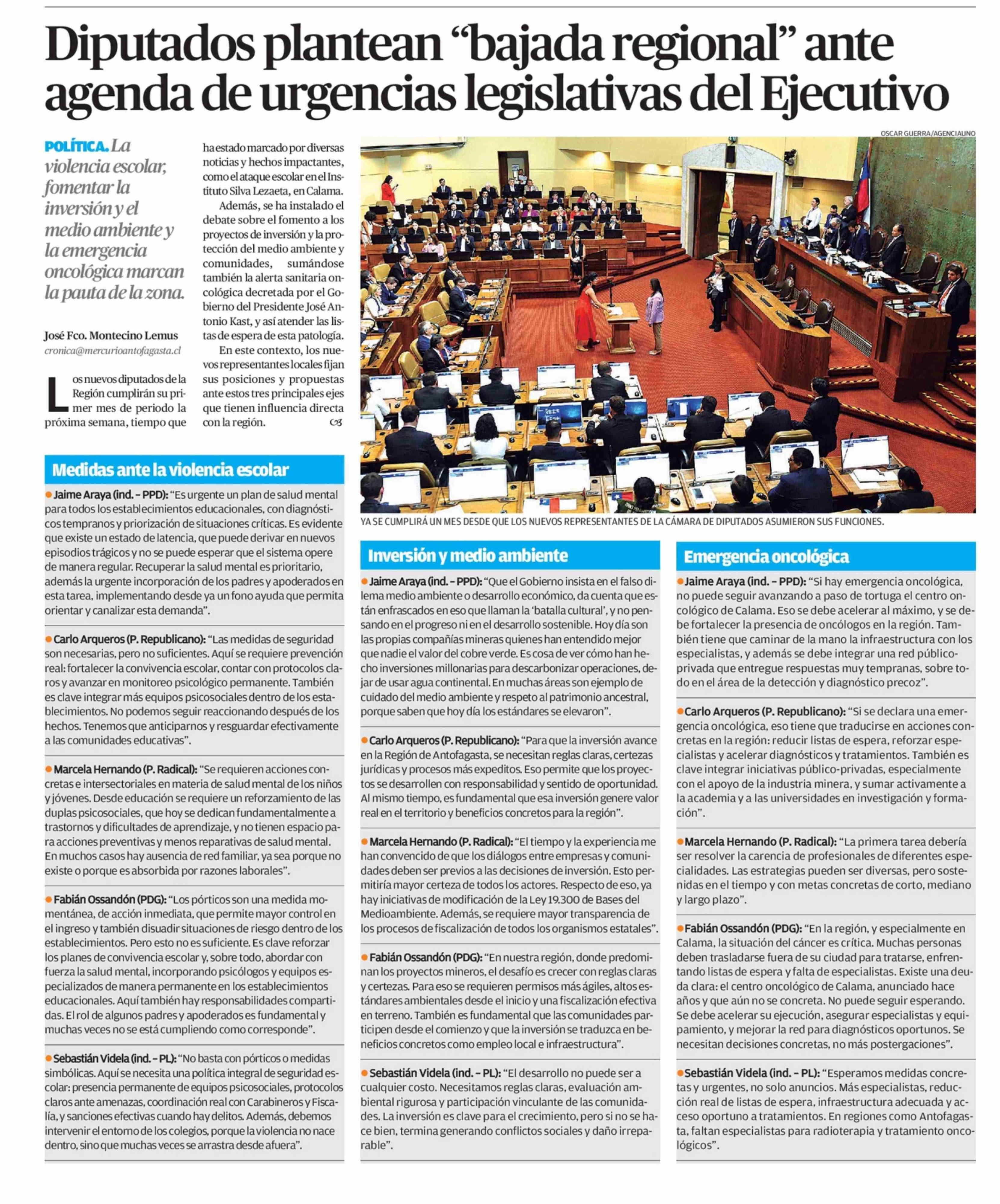 Título: Diputados plantean "bajada regional" ante agenda de urgencias legislativas del Ejecutivo