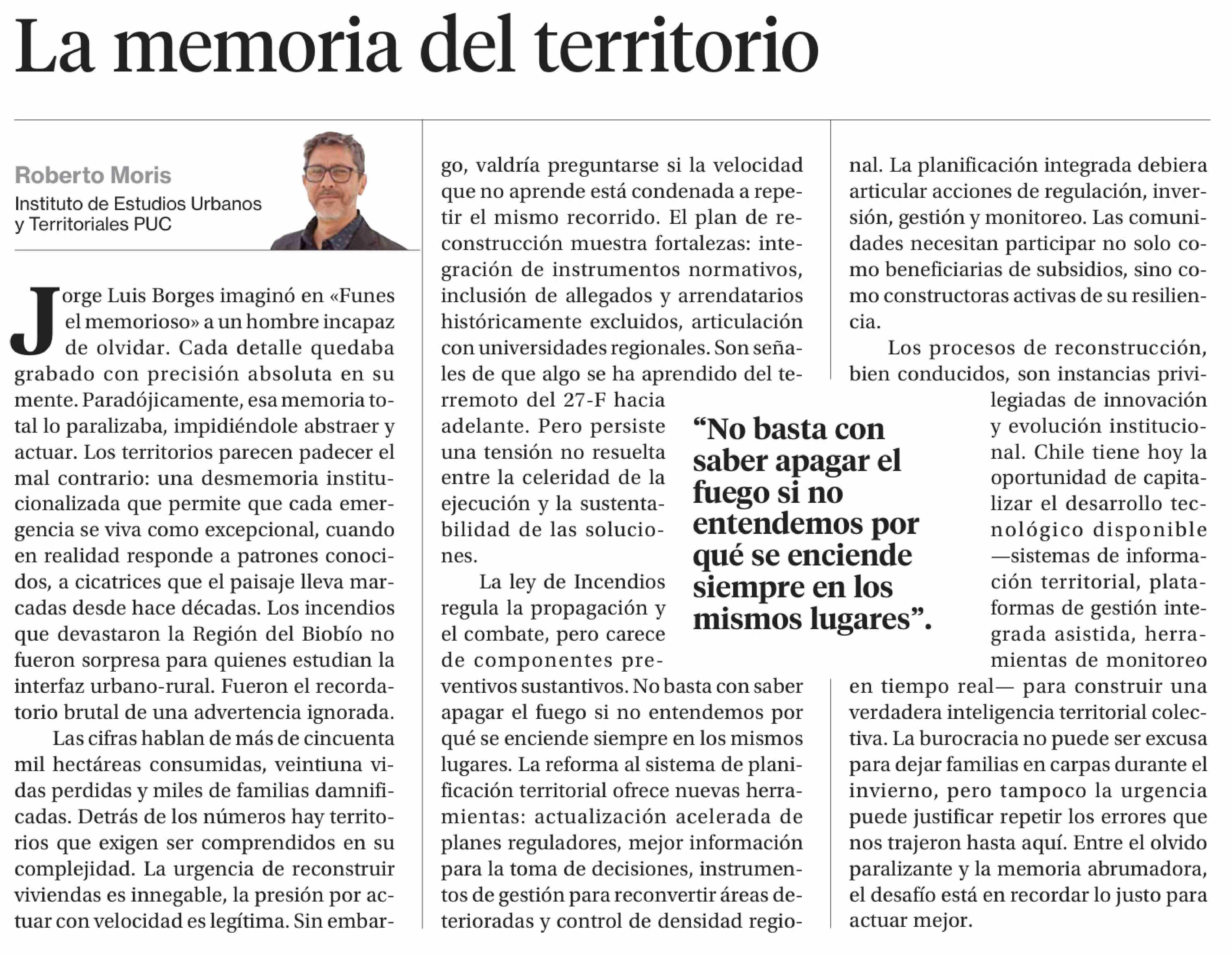 Columnas de Opinión: La memoria del territorio