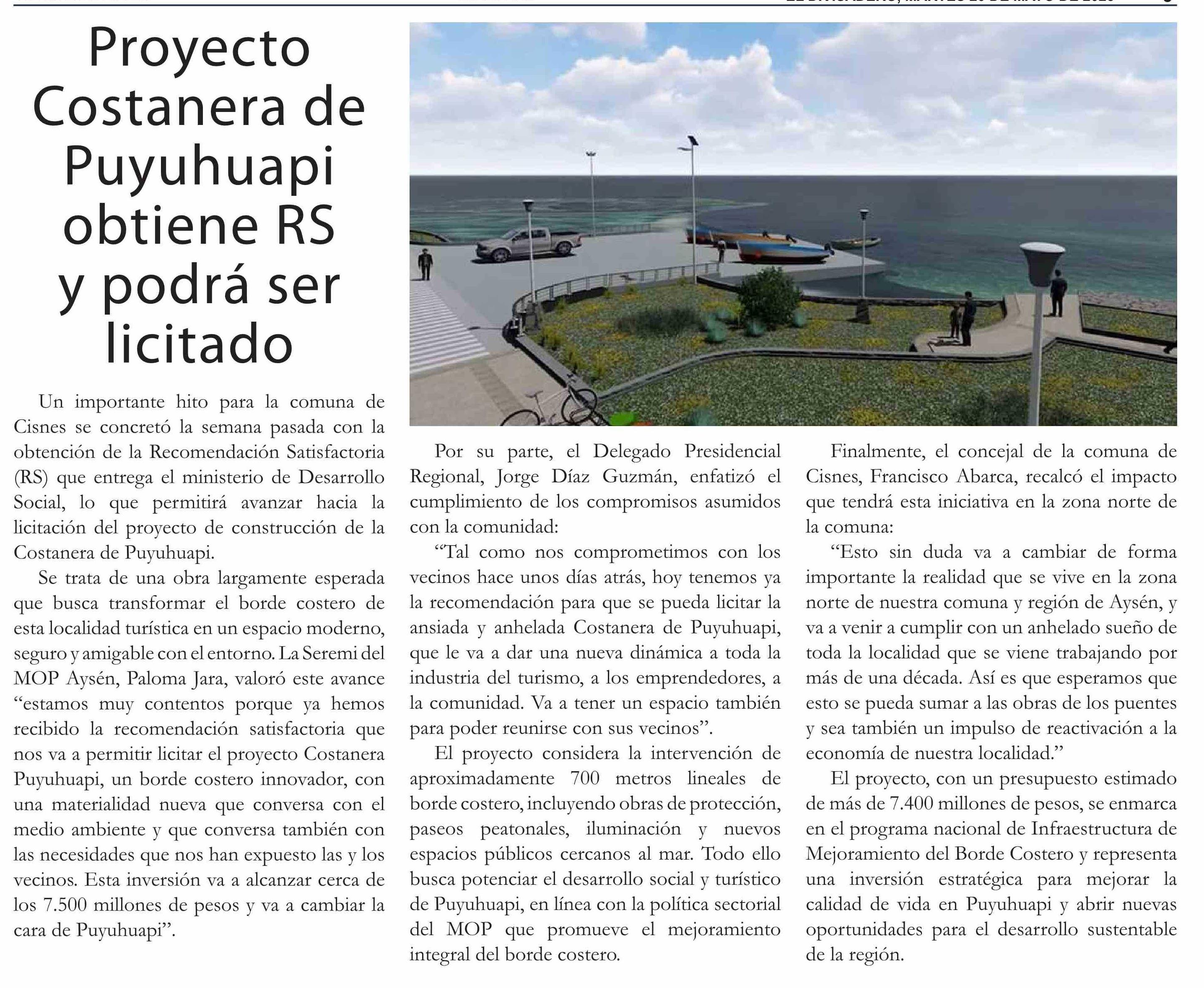 | Título: | Proyecto Costanera de Puyuhuapi obtiene RS y podrá ser licitado |