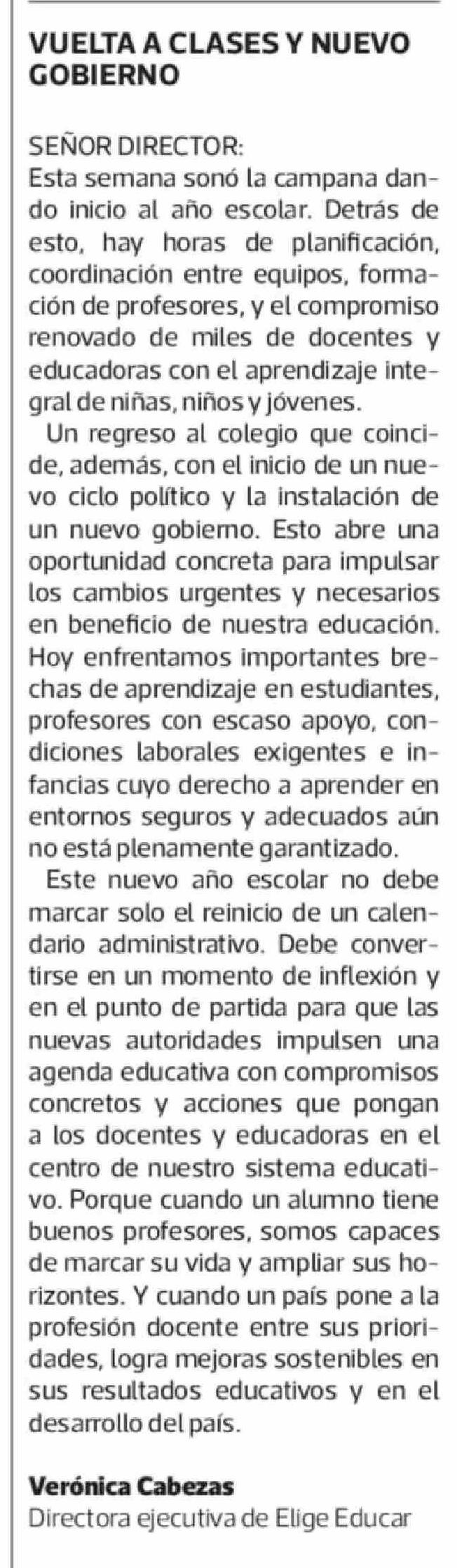 Título: Cartas: VUELTA A CLASES Y NUEVO GOBIERNO