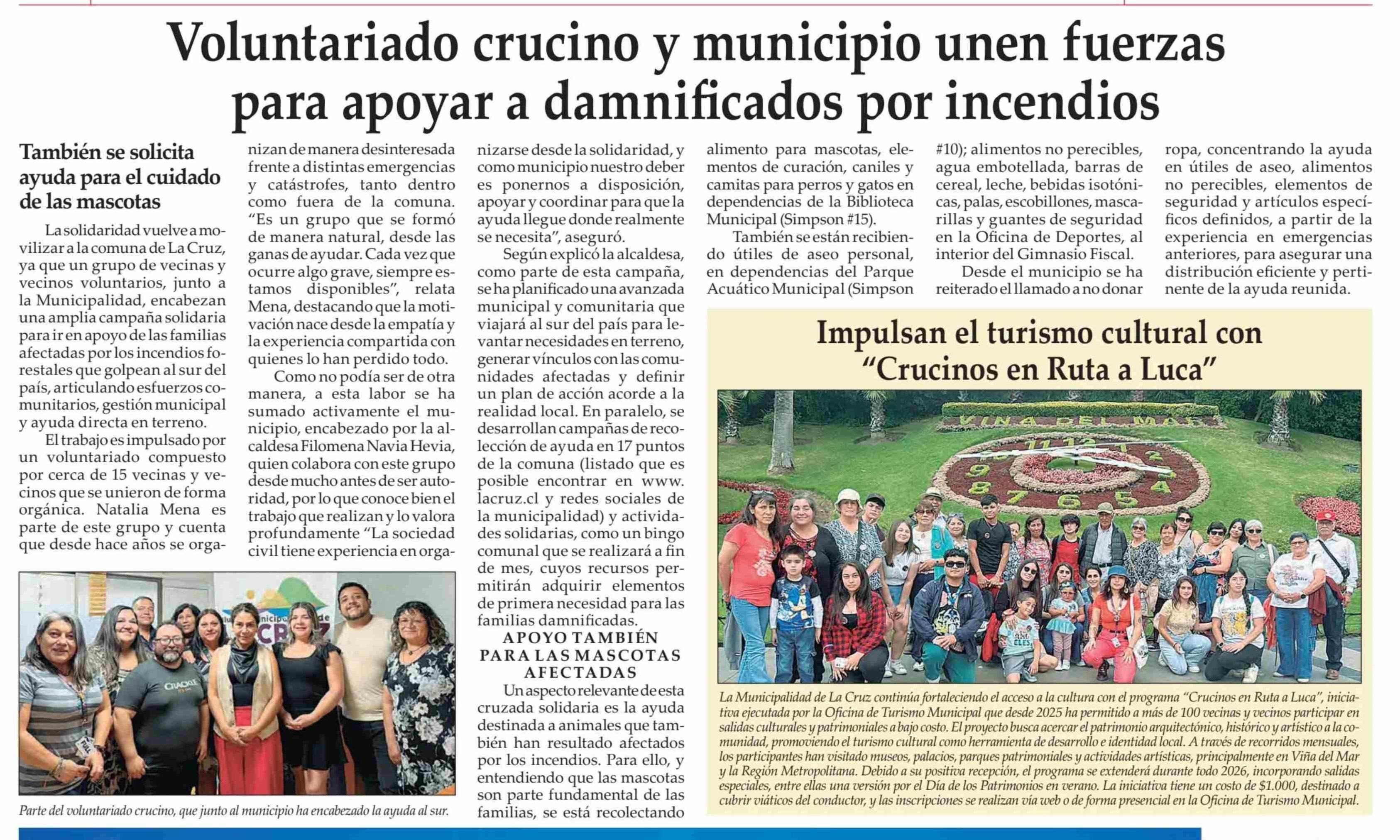 Voluntariado crucino y municipio unen fuerzas para apoyar a damnificados por incendios 23-01-2026 El Observador |