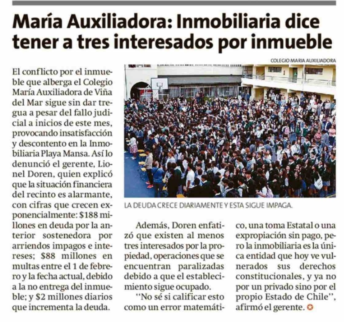 Maria Auxiliadora: Inmobiliaria dice tener a tres interesados por inmueble 17-03-2026 La Estrella de Valparaíso |