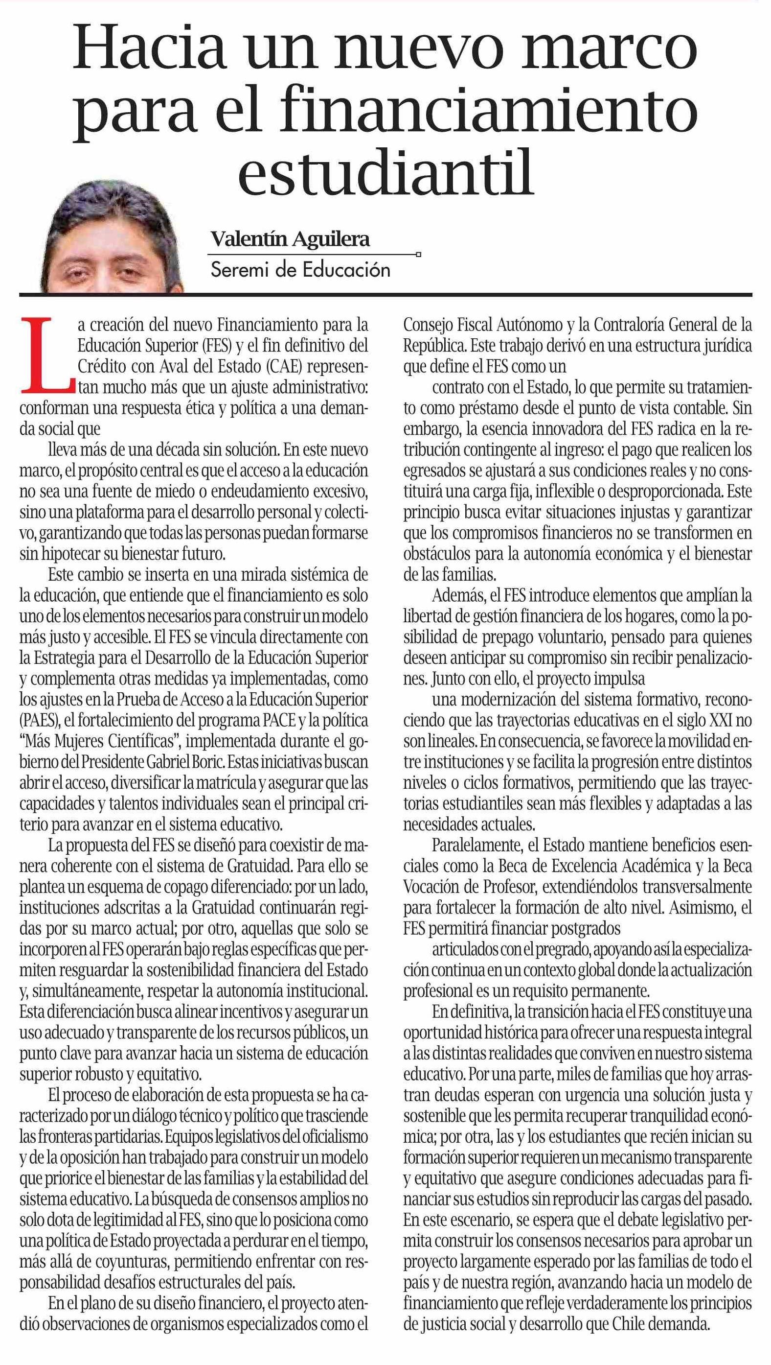 Título: Columnas de Opinión: Hacia un nuevo marco para el financiamiento estudiantil