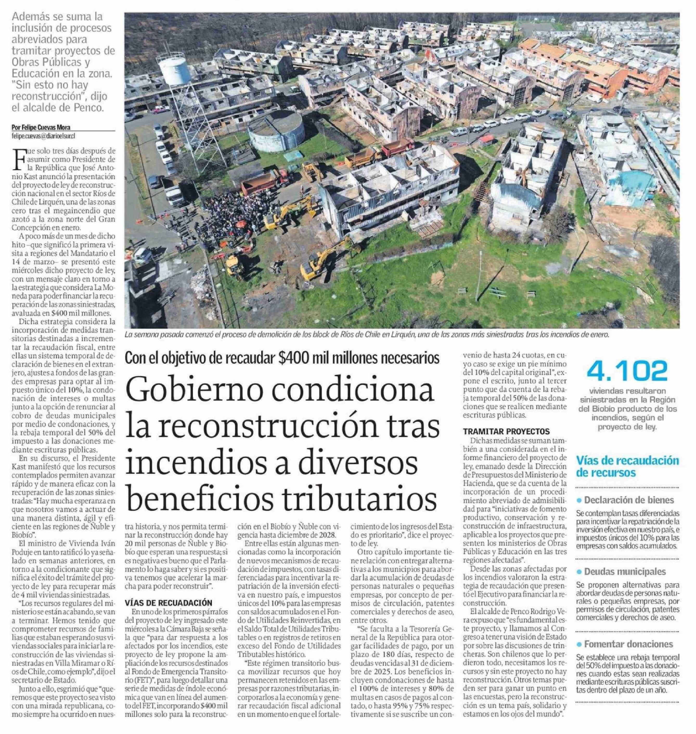 Título: Gobierno condiciona la reconstrucción tras incendios a diversos beneficios tributarios