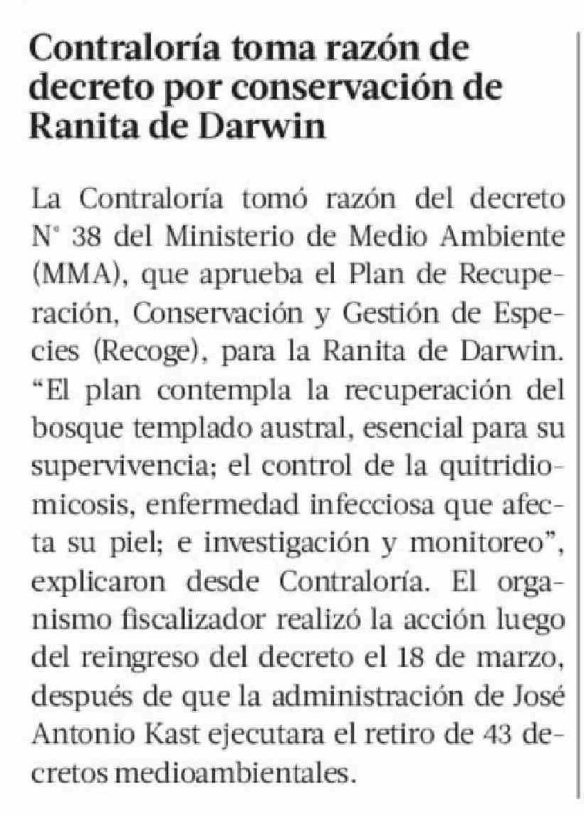Título: Contraloría toma razón de decreto por conservación de Ranita de Darwin