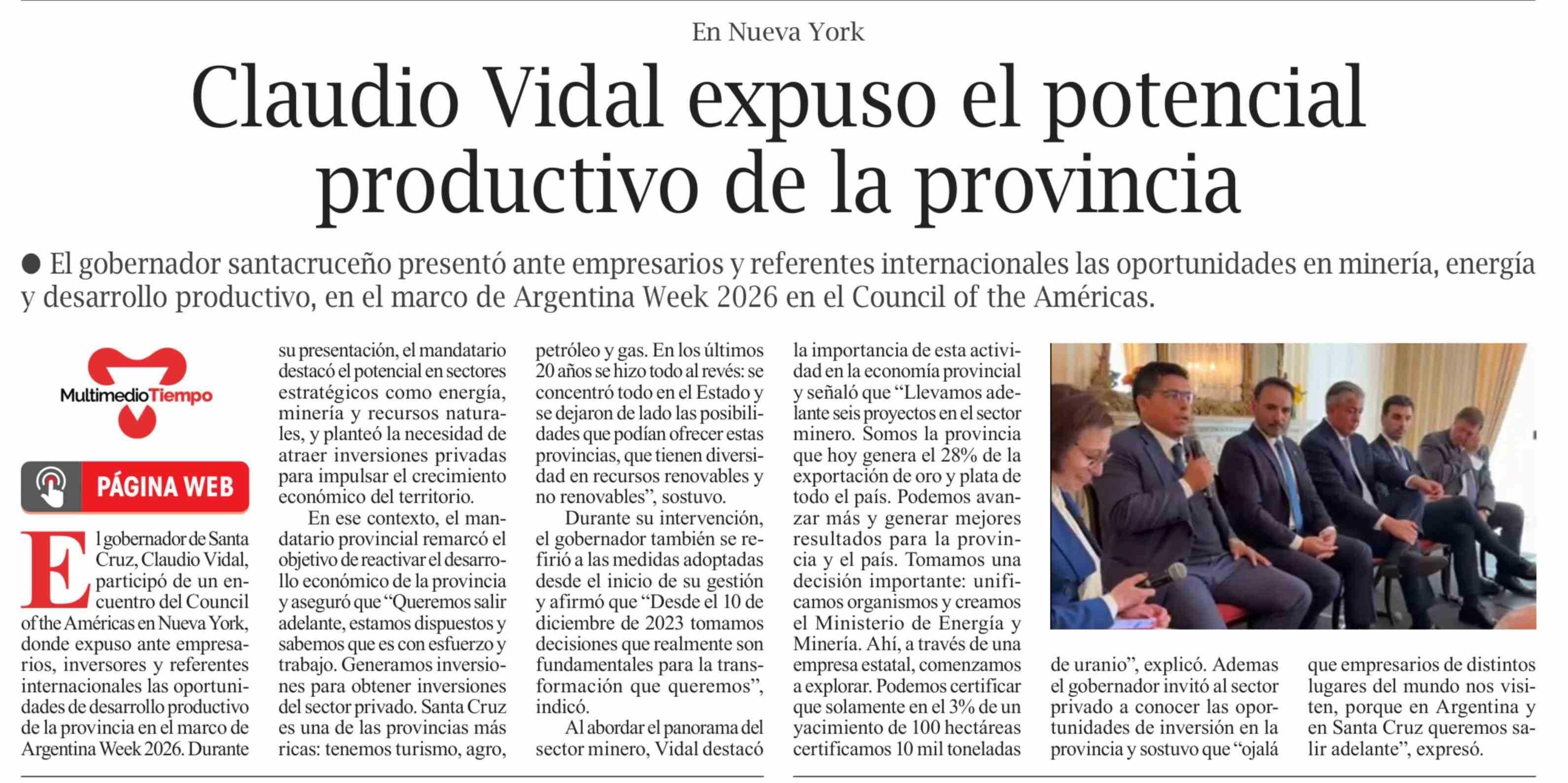 Título: Claudio Vidal expuso el potencial productivo de la provincia