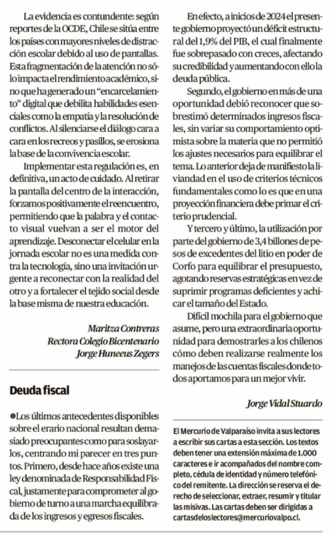 Cartas: Deuda fiscal