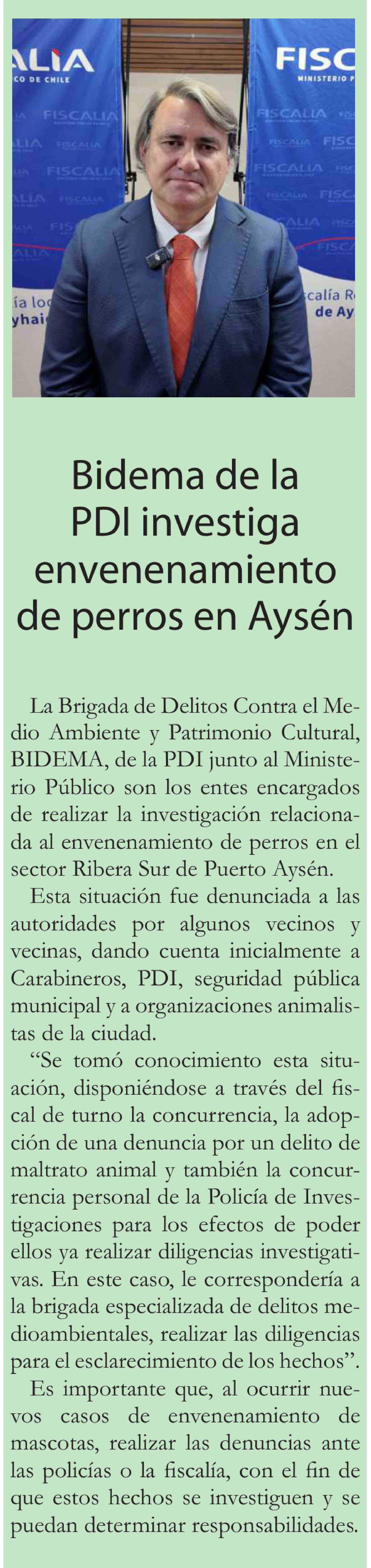 | Título: | Bidema de la PDI investiga envenenamiento de perros en Aysén |