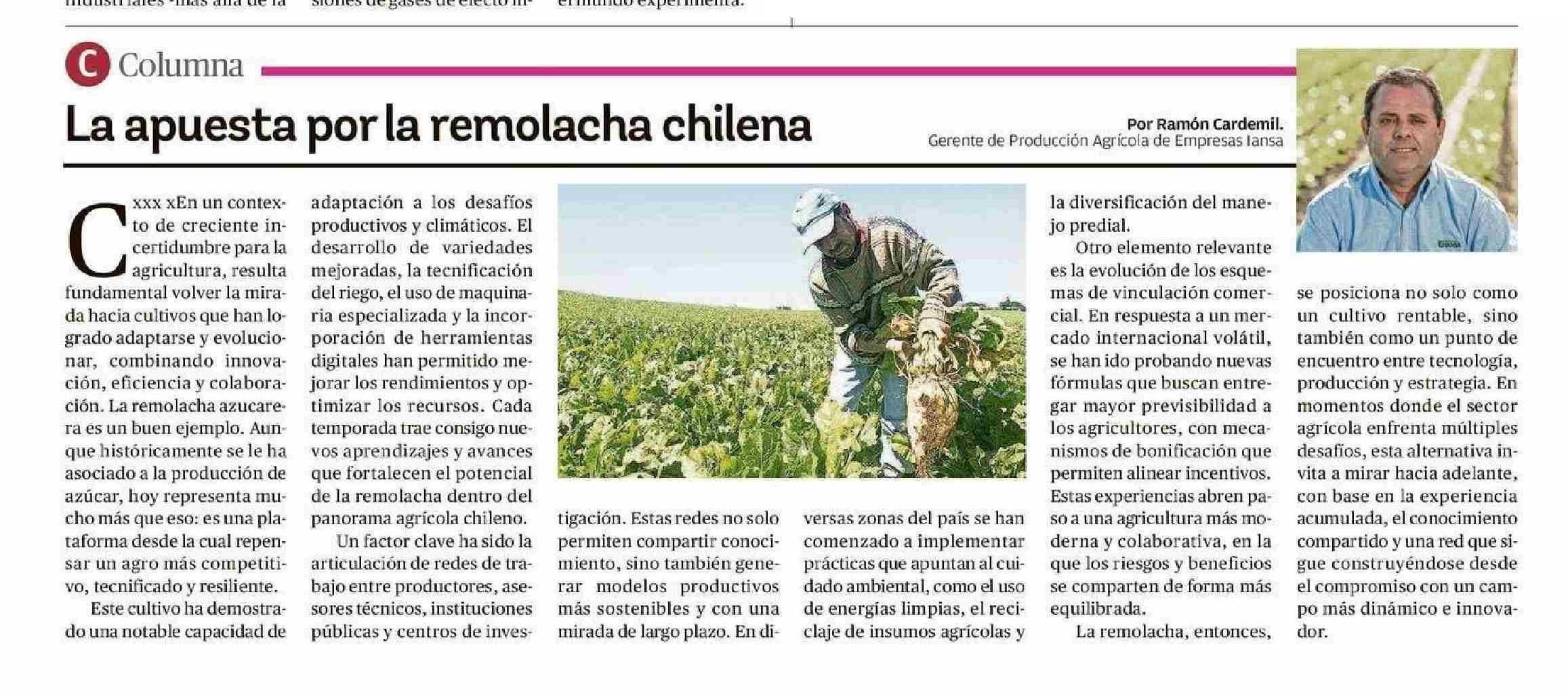| Título: | COLUMNAS DE OPINIÓN: La apuesta por la remolacha chilena |
