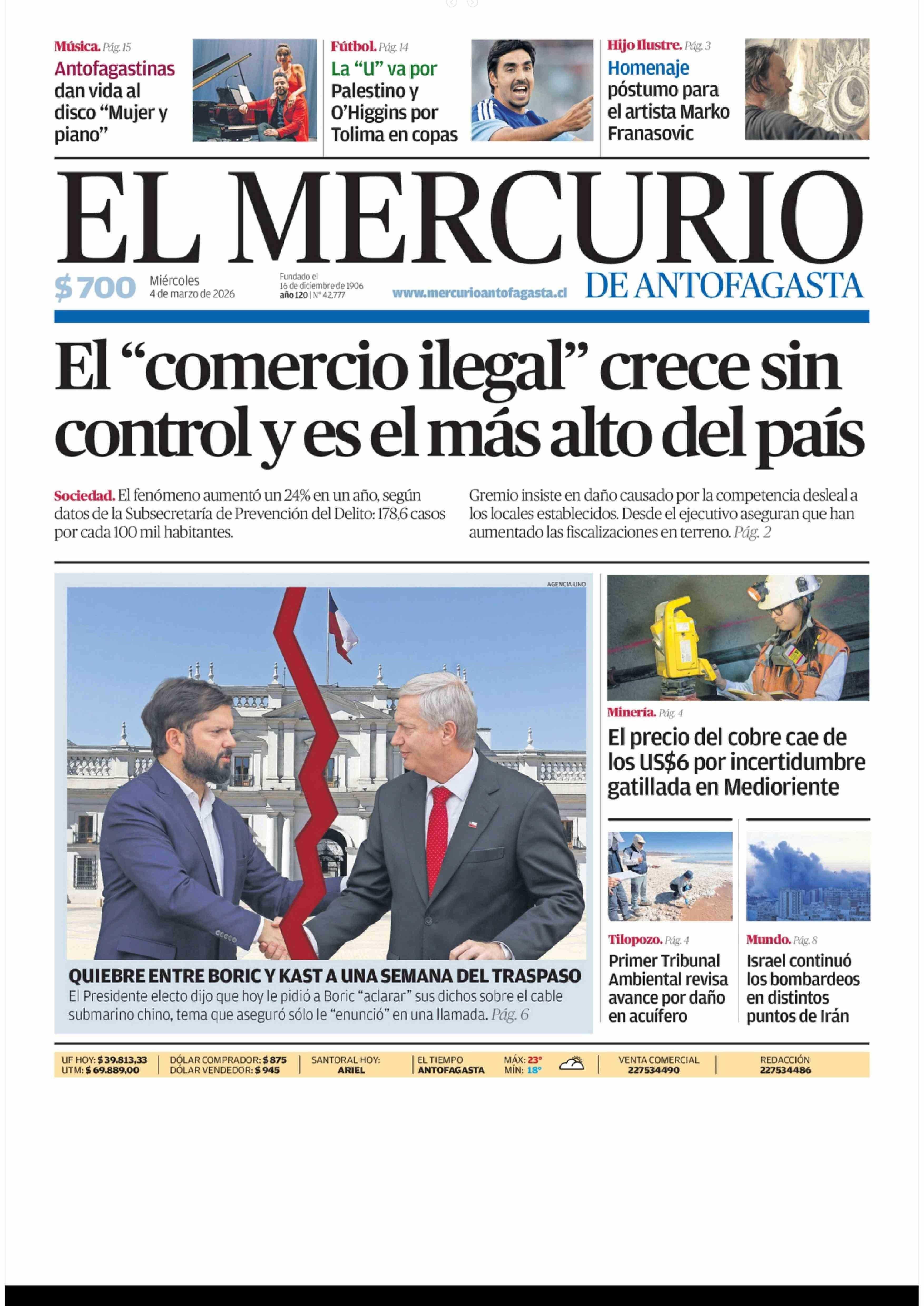 | Fecha: | 04-03-2026 | Sector: | Portada | Región: | Región de Antofagasta |