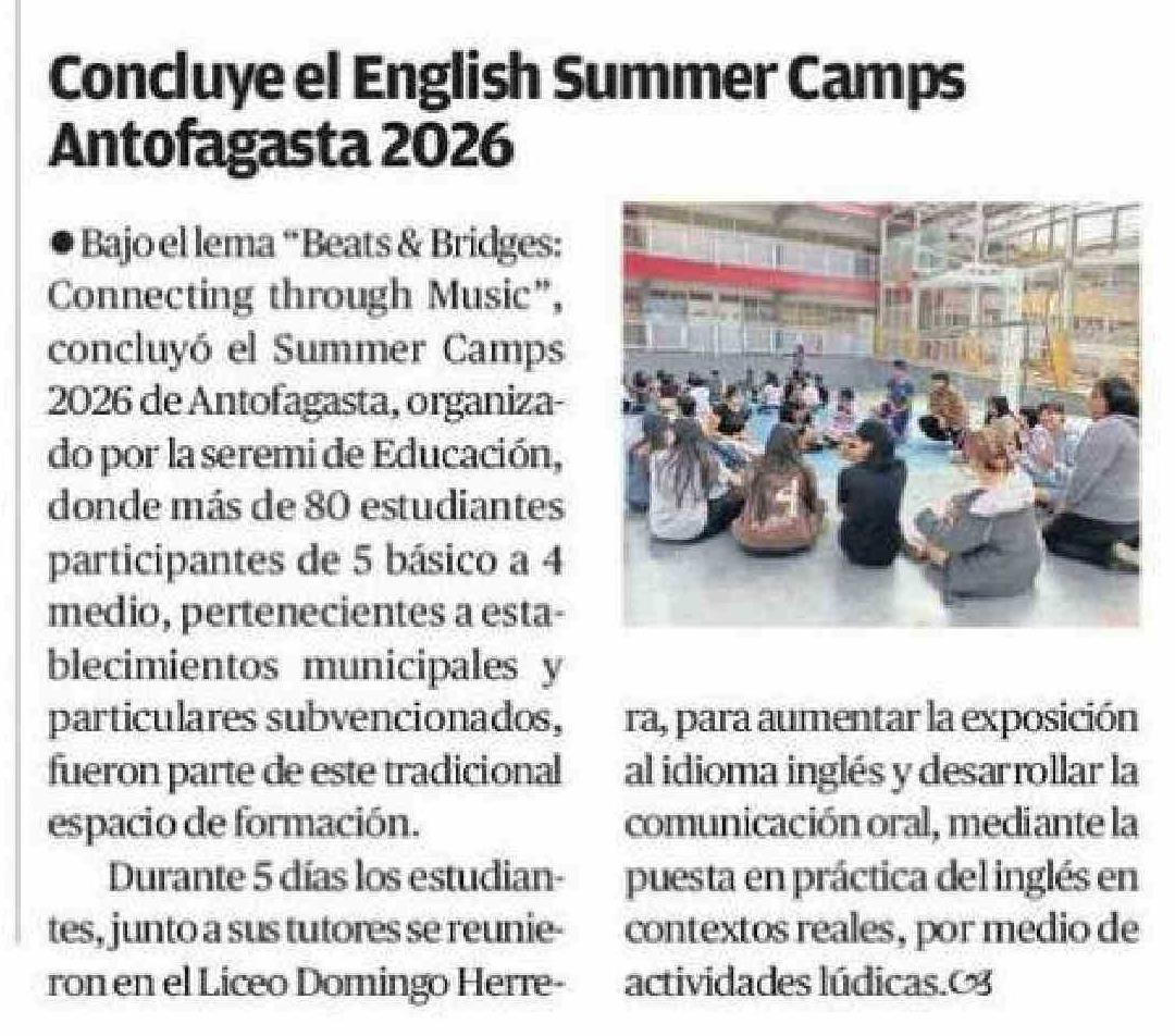 Título: Concluye el English Summer Camps Antofagasta 2026