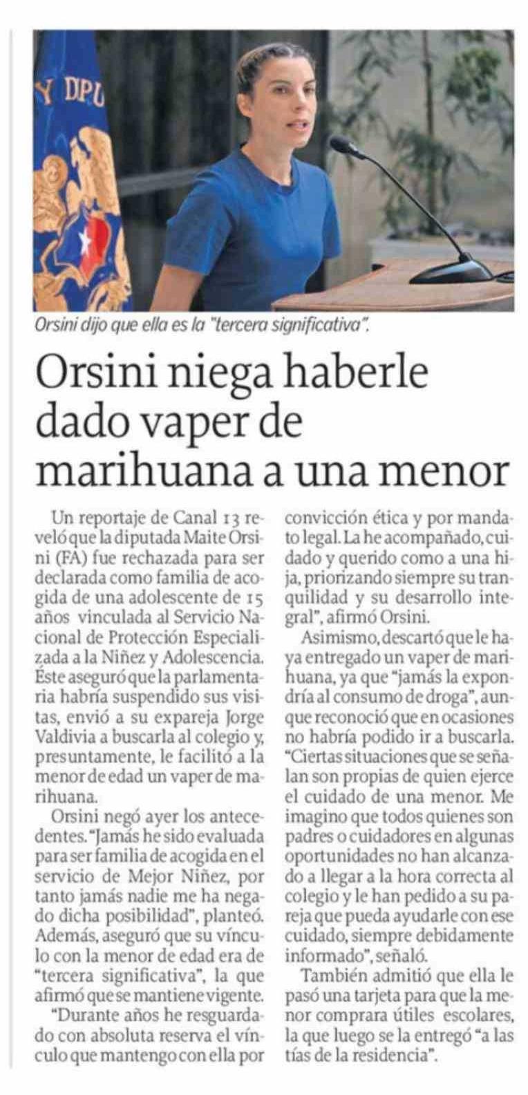 Título: Orsini niega haberle dado vaper de marihuana a una menor