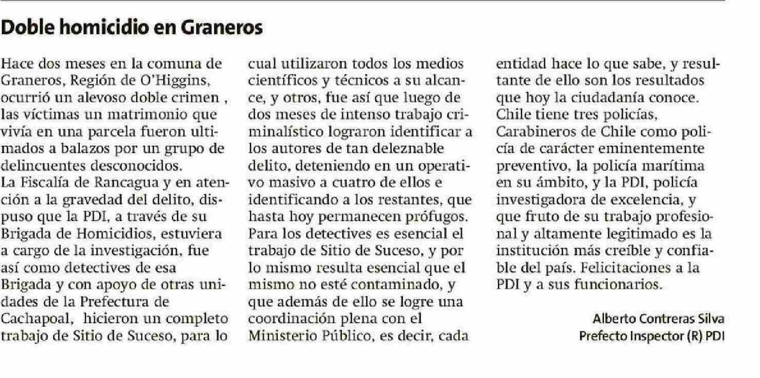CARTAS: Doble homicidio en Graneros 17-05-2025 La Estrella de Valparaíso |