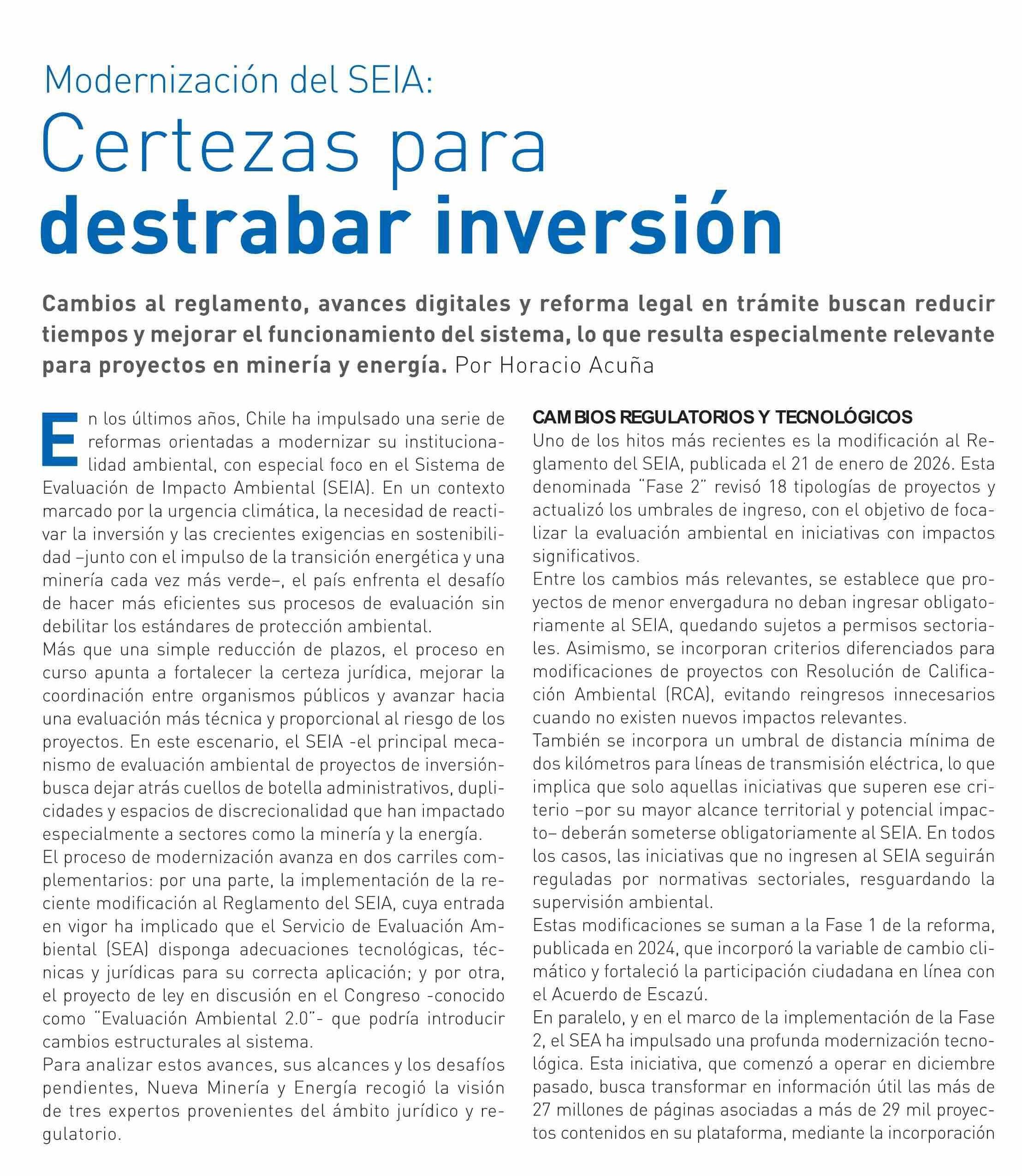 Certezas para destrabar inversión 15-04-2026 Revista Nueva Minería & Energía |