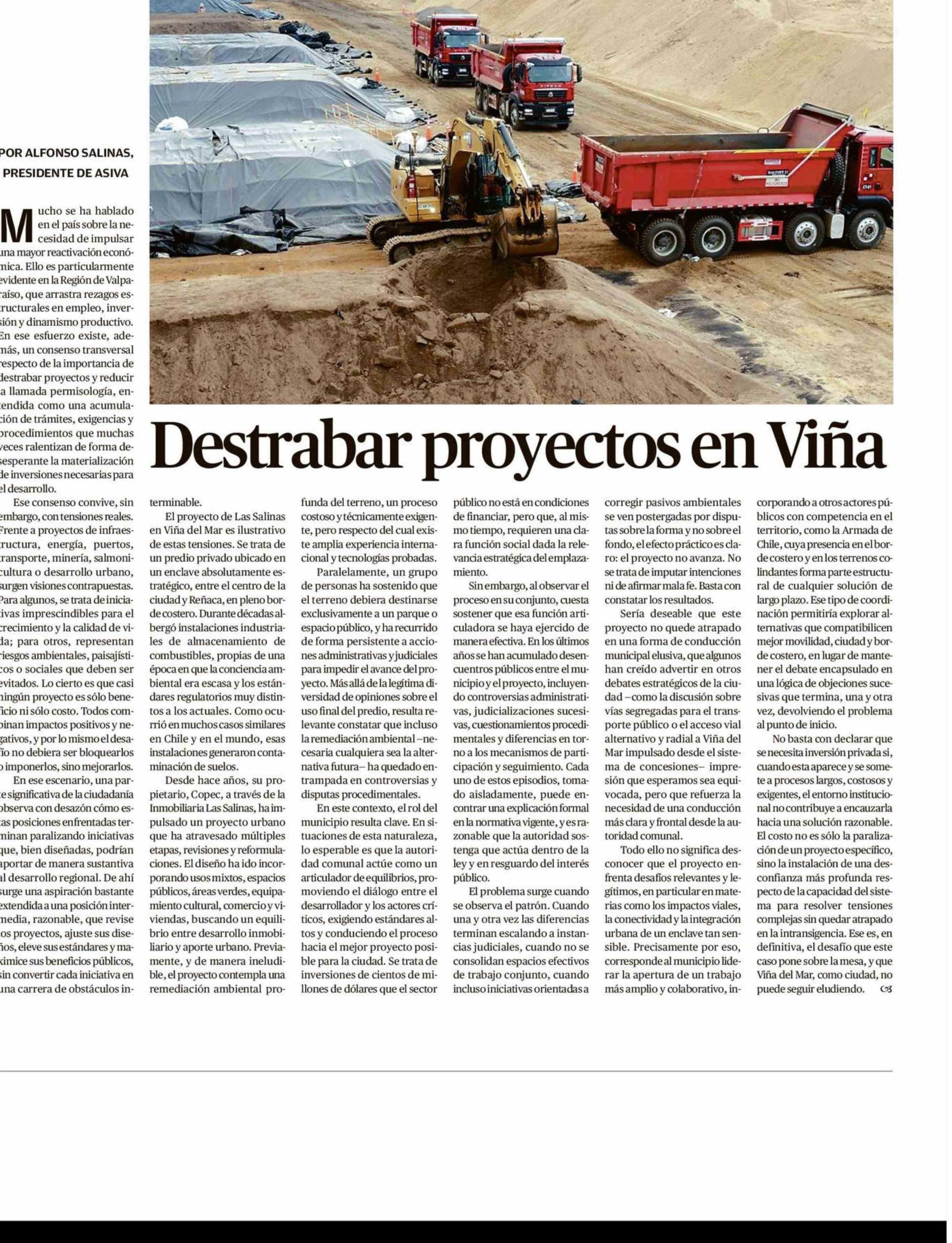 Columnas de Opinión: Destrabar proyectos en Viña 28-01-2026 El Mercurio de Valparaíso |