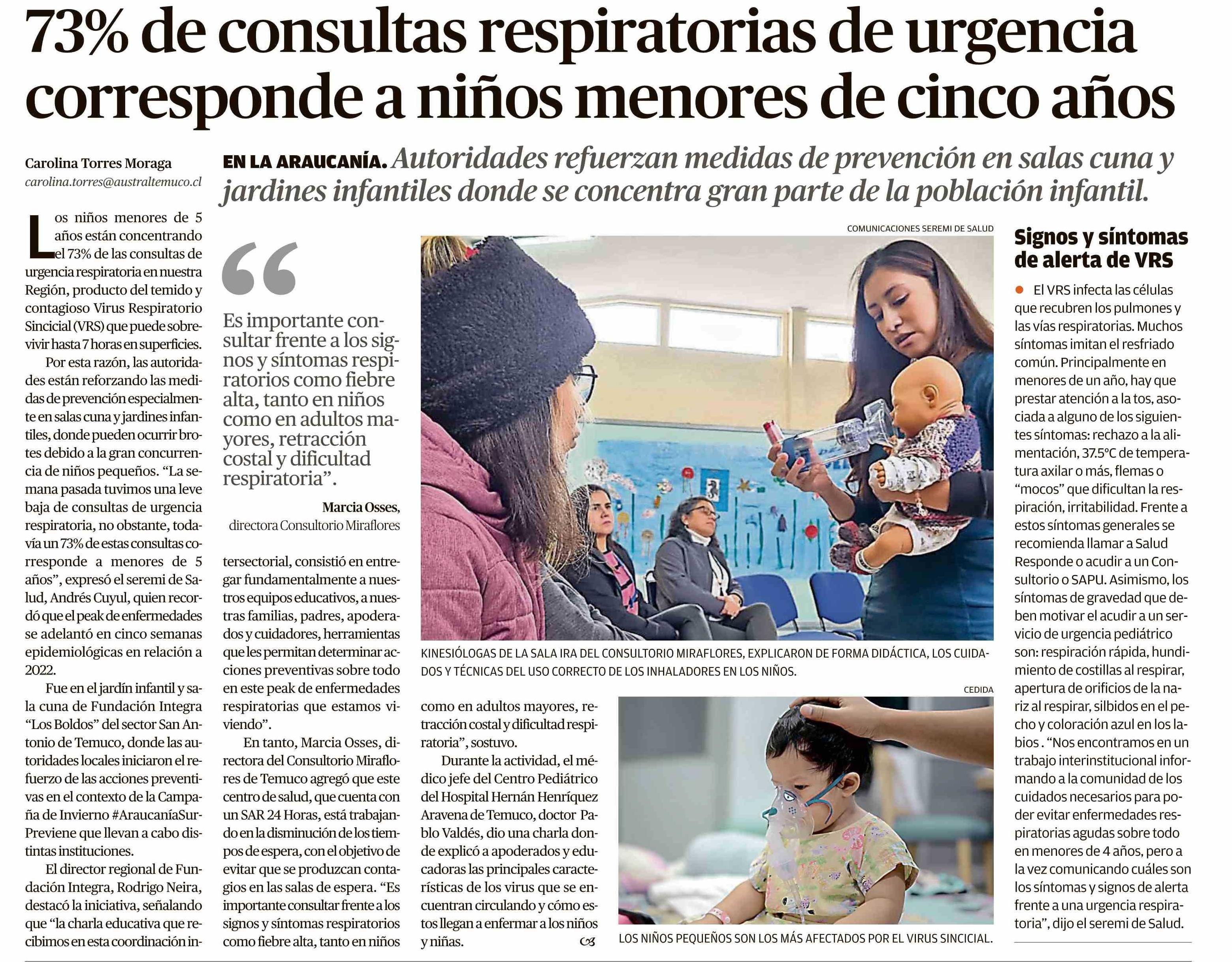 Título: 73% de consultas respiratorias de urgencia corresponde a niños menores de cinco años