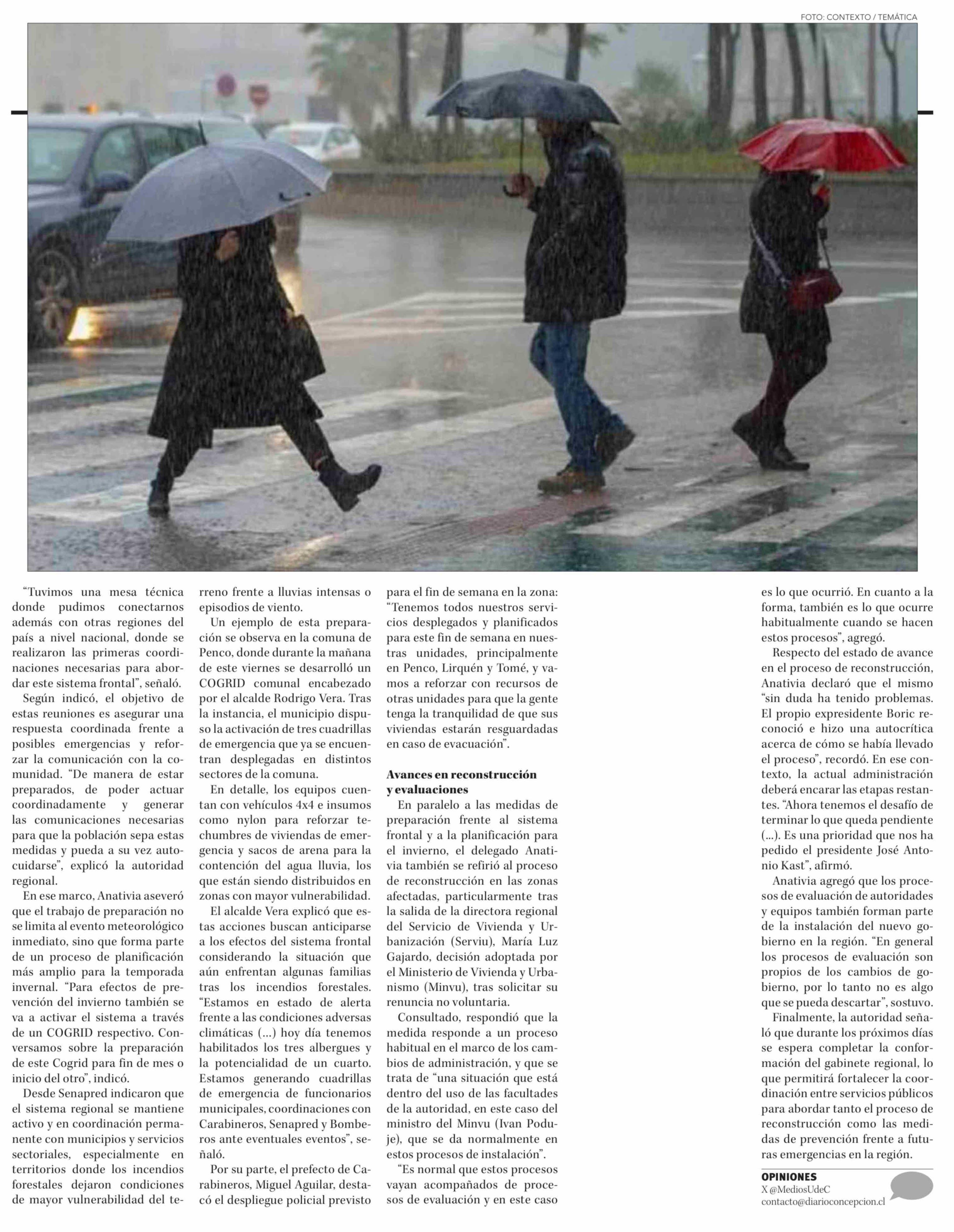 Coordinan medidas preventivas ante el invierno en zonas afectadas por incendios en Penco y Lirquén 14-03-2026 Diario Concepción |