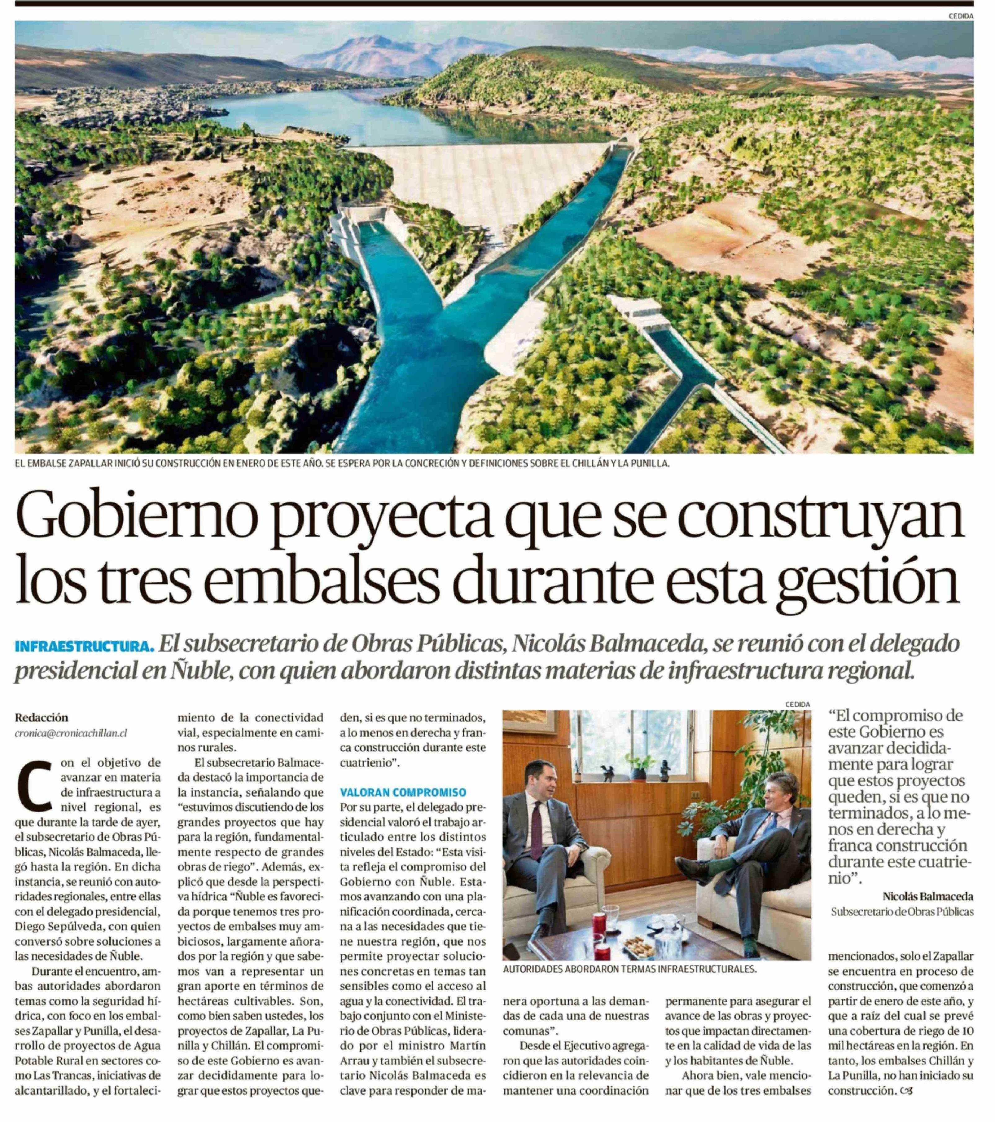 Título: Gobierno proyecta que se construyan los tres embalses durante esta gestión