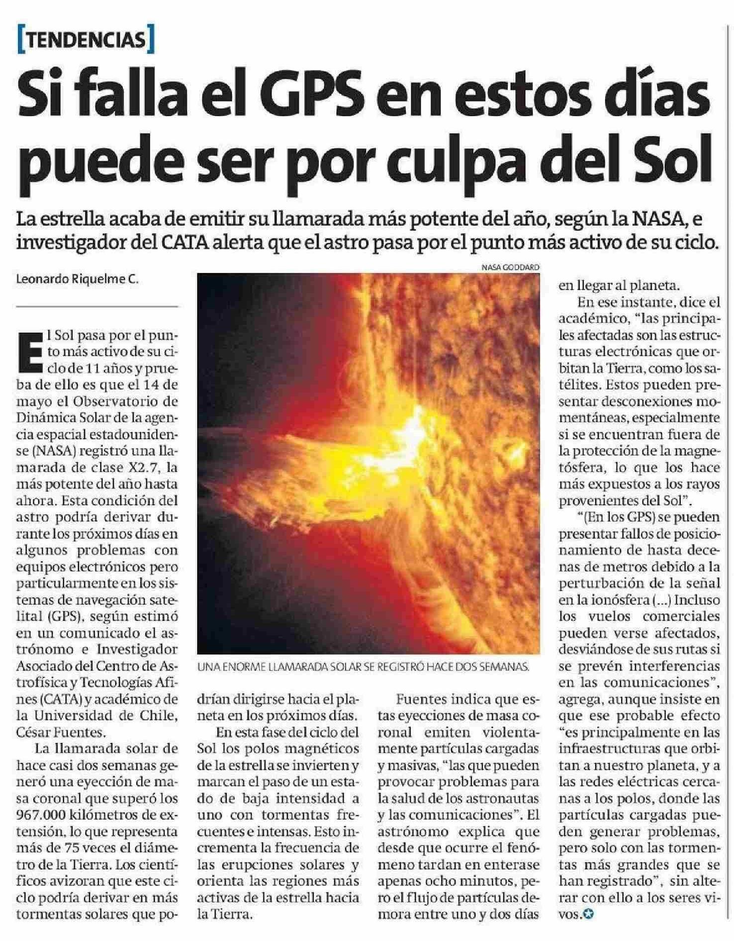 Si falla el GPS en estos días puede ser por culpa del Sol 29-05-2025 La Estrella de Antofagasta |