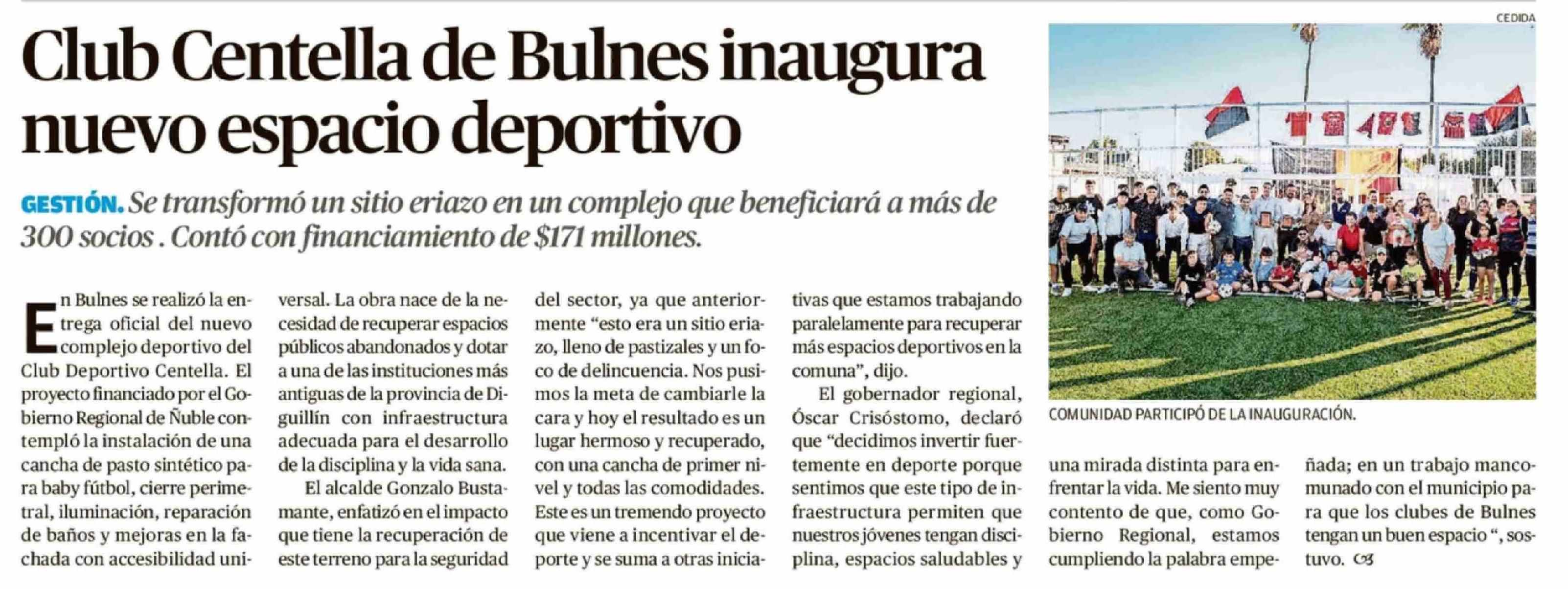| Título: | Club Centella de Bulnes inaugura nuevo espacio deportivo |