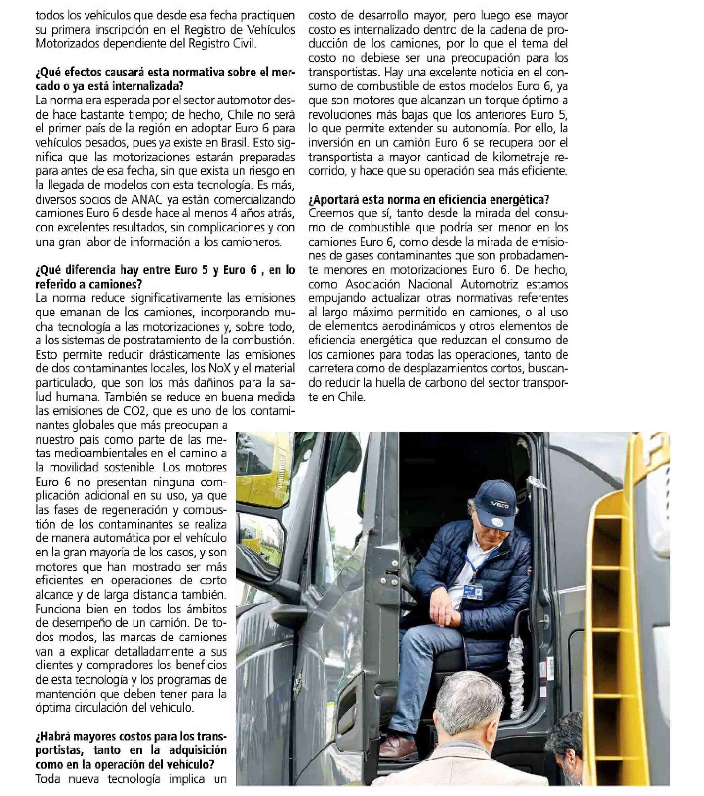 “Euro 6 obligatoria en camiones nuevos para 2026 será un aporte en eficiencia energética” 17-10-2024 Revista Del Camionero |