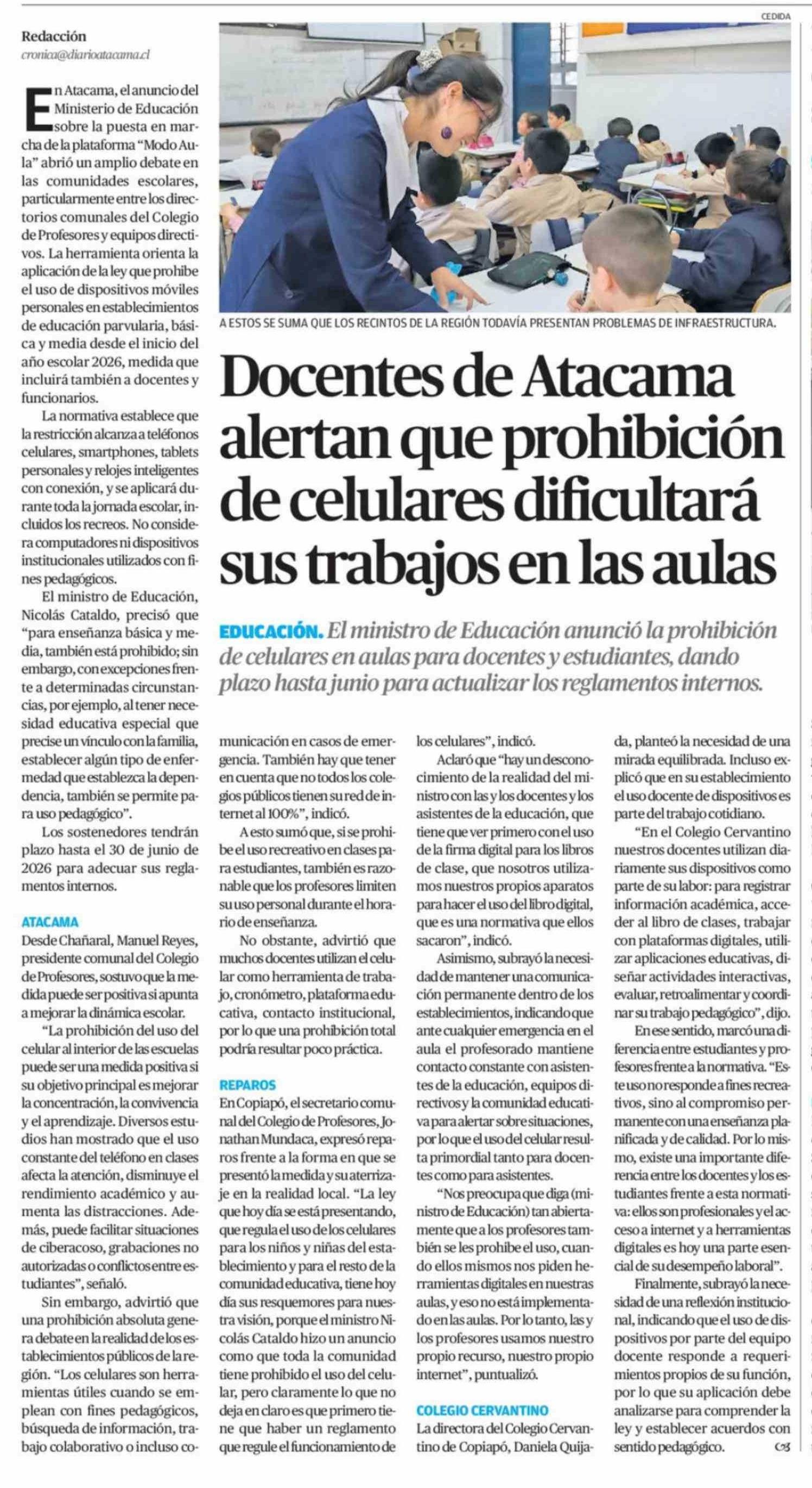 Título: Docentes de Atacama alertan que prohibición de celulares dificultará sus trabajos en las aulas