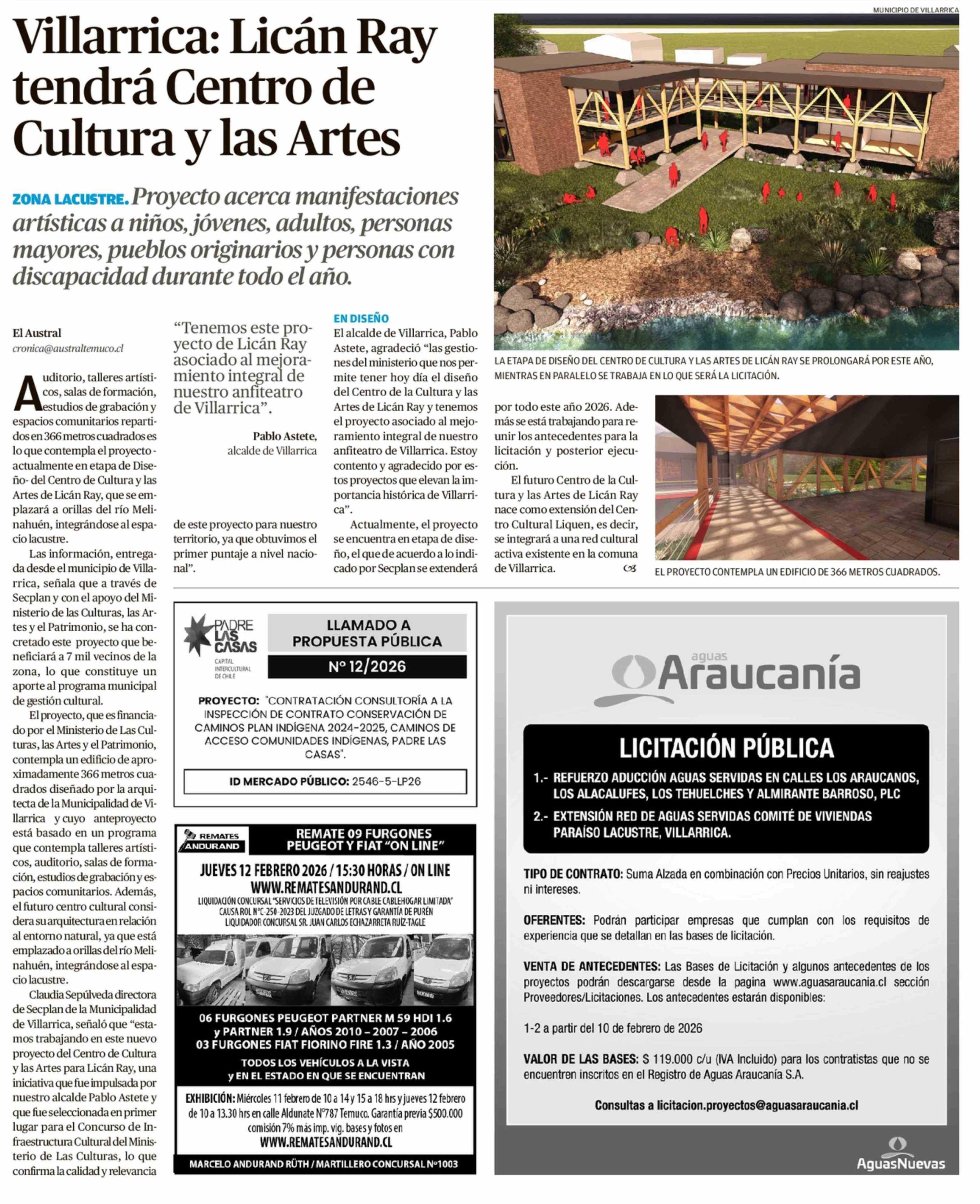 Villarrica: Licán Ray tendrá Centro de Cultura y las Artes 08-02-2026 El Austral de la Araucanía |