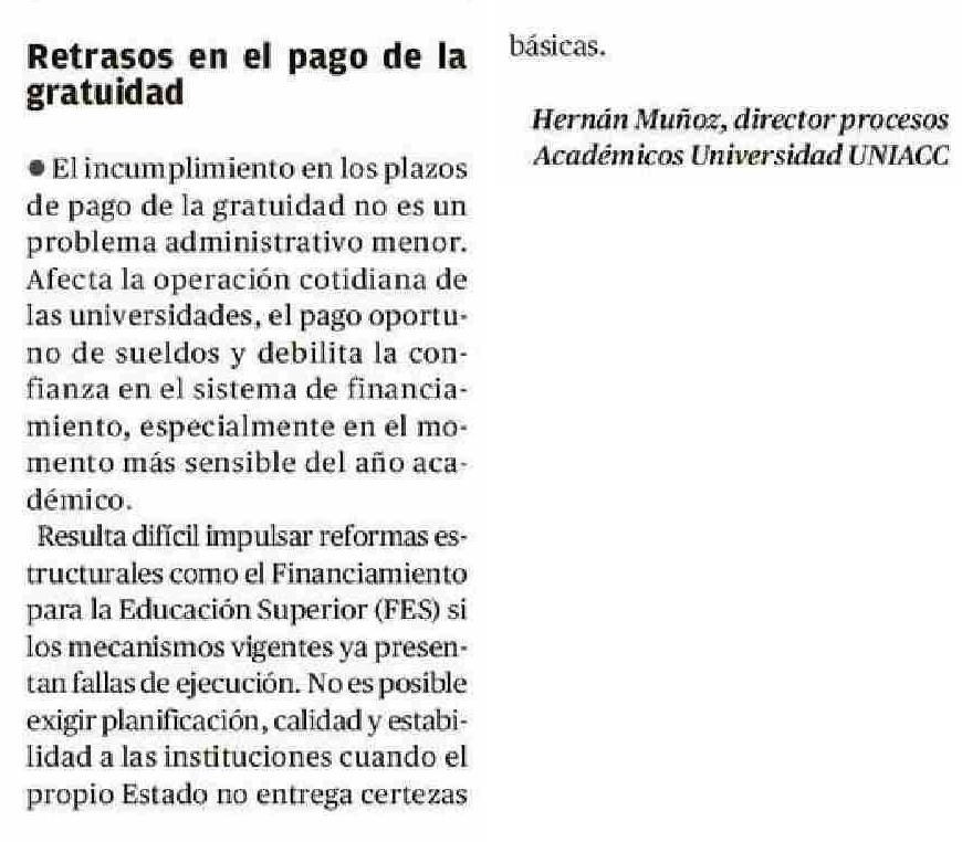 Título: Cartas: Retrasos en el pago de la gratuidad