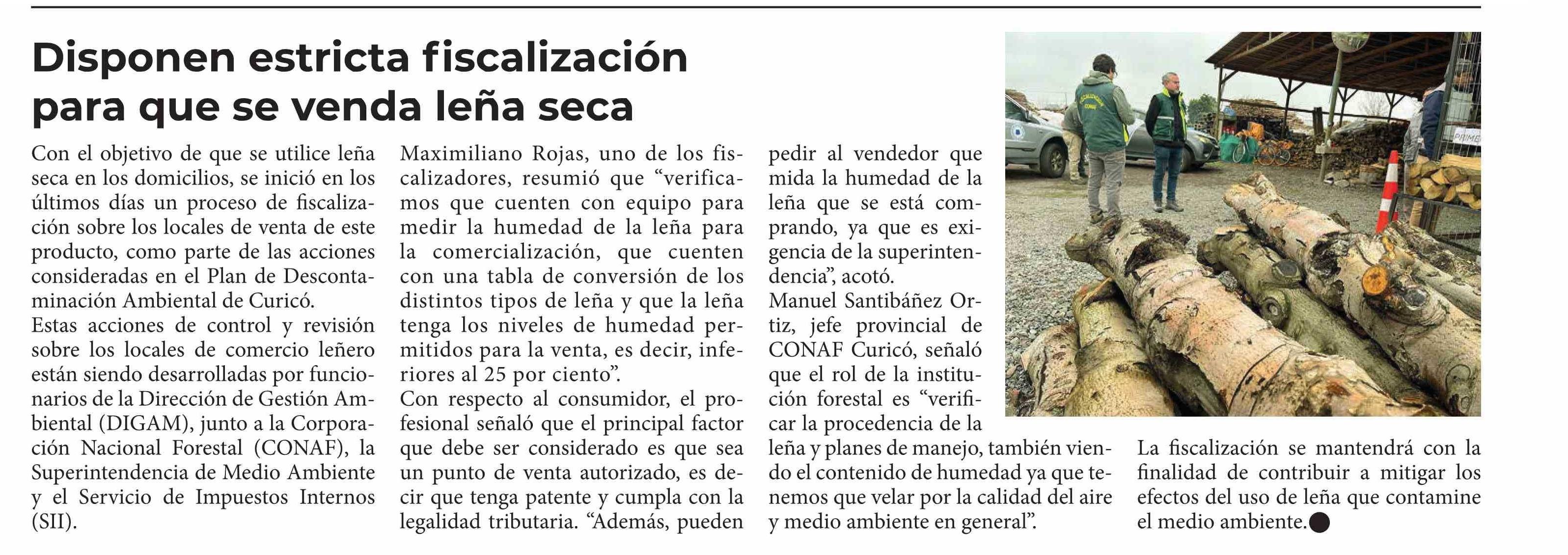 Disponen estricta fiscalización para que se venda leña seca 01-06-2025 Diario Talca |