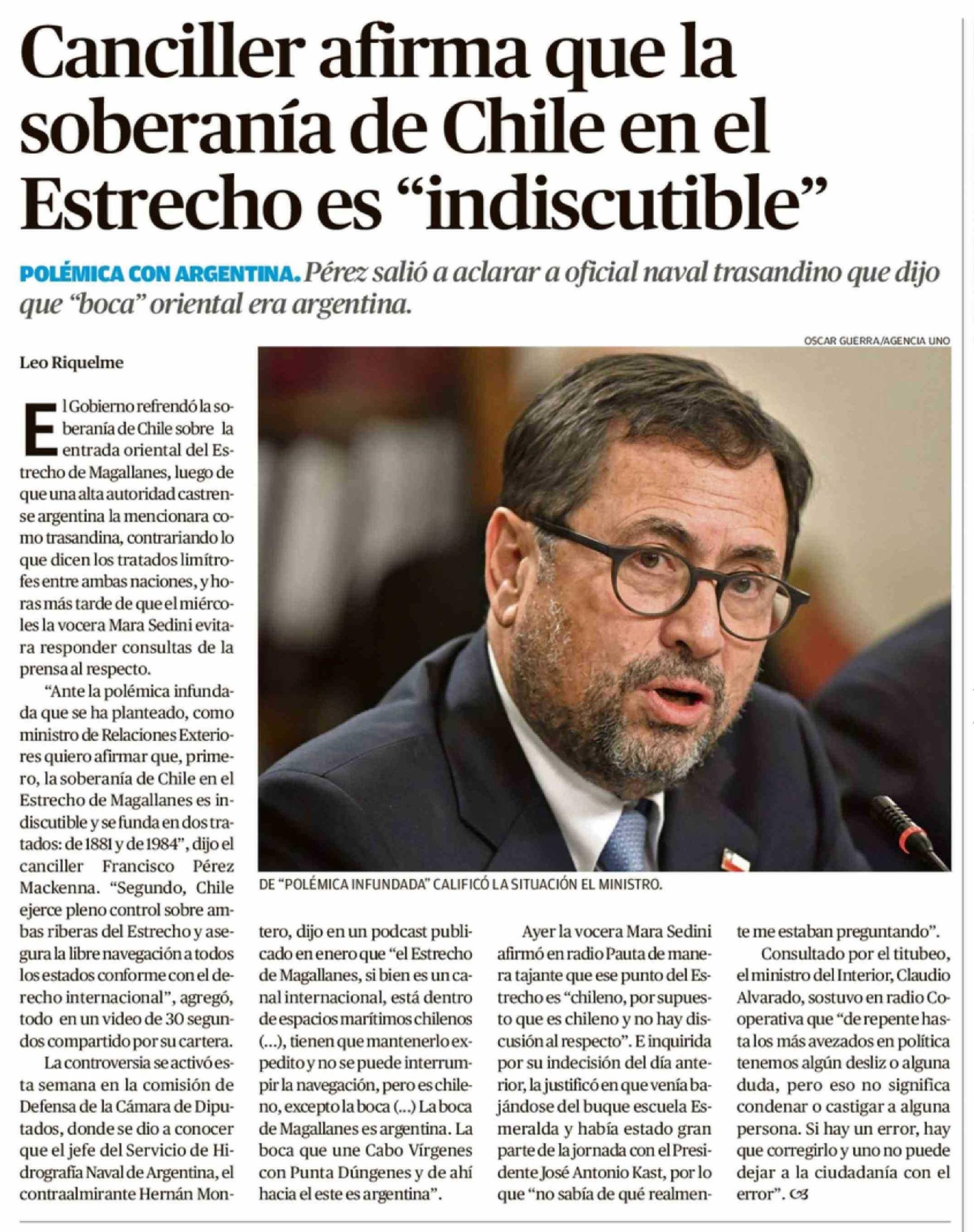 | Título: | Canciller afirma que la soberanía de Chile en el Estrecho es "indiscutible" |