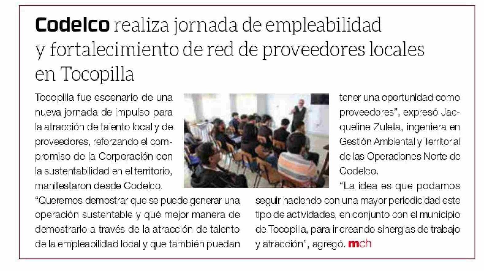 Título: Codelco realiza jornada de empleabilidad y fortalecimiento de red de proveedores locales en Tocopilla
