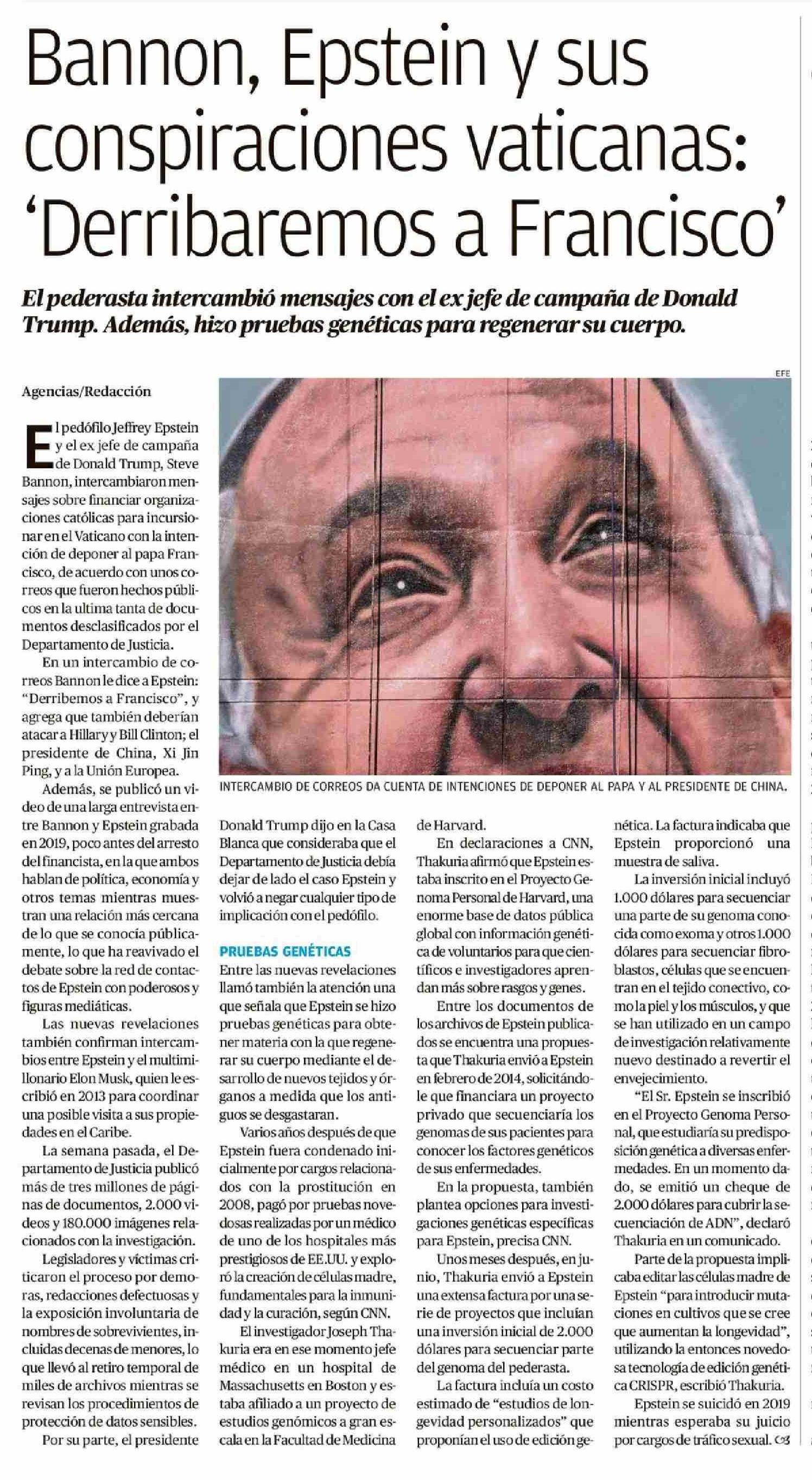 | Título: | Bannon, Epstein y sus conspiraciones vaticanas: 'Derribaremos a Francisco' |