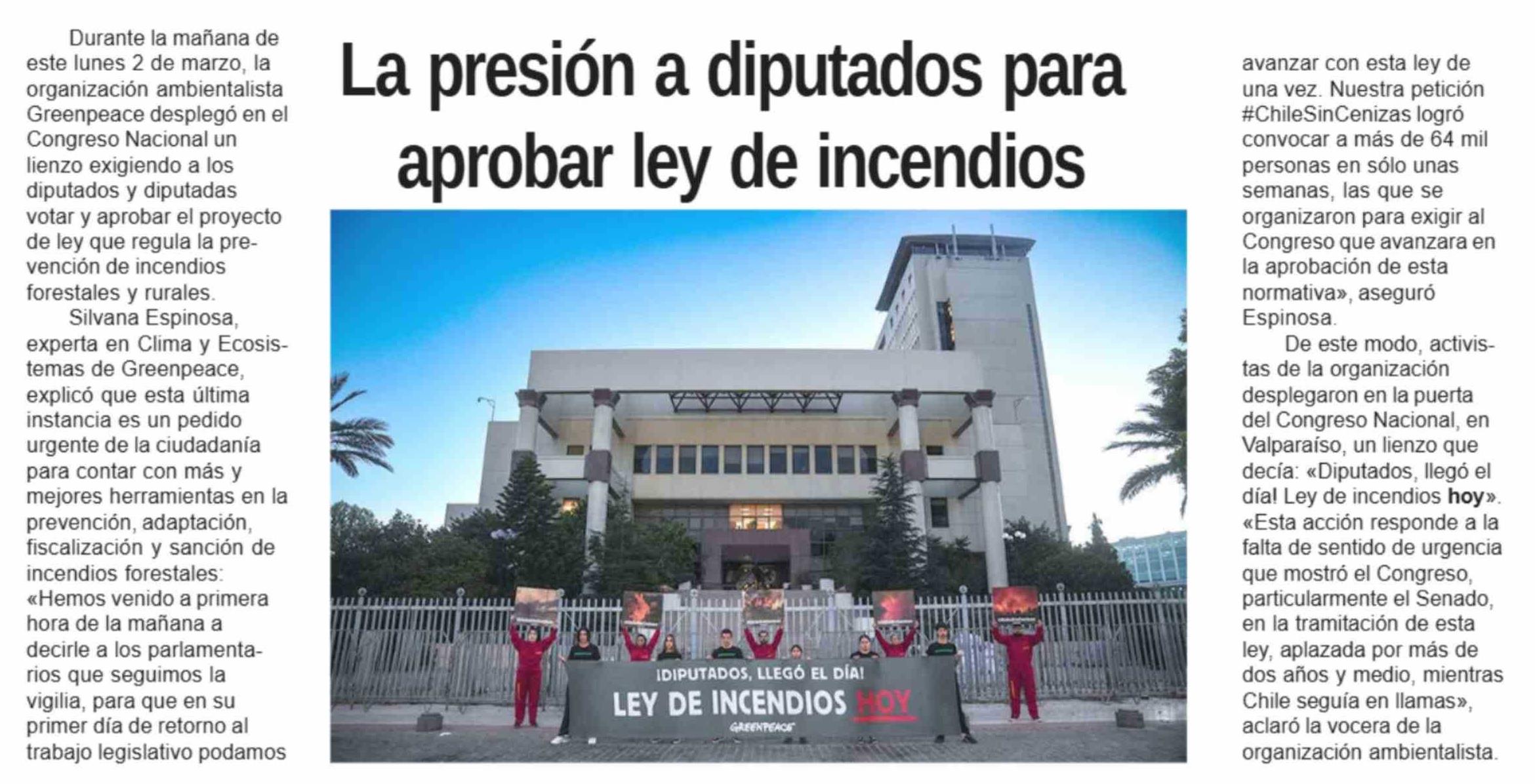La presión a diputados para aprobar ley de incendios 03-03-2026 Diario la Región |