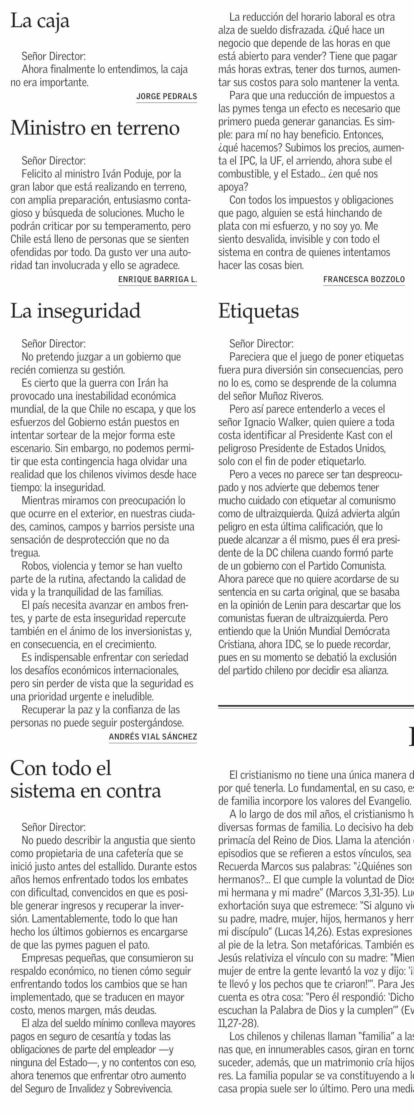 Cartas: Con todo el sistema en contra 16-04-2026 El Mercurio |